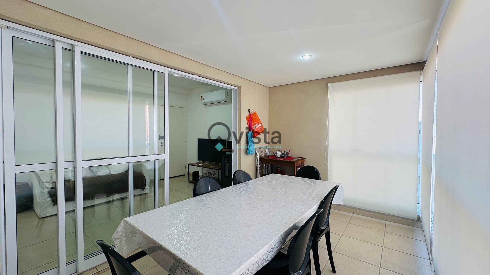 Varanda gourmet integrada com a sala;