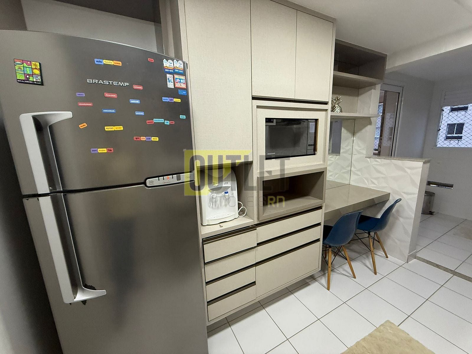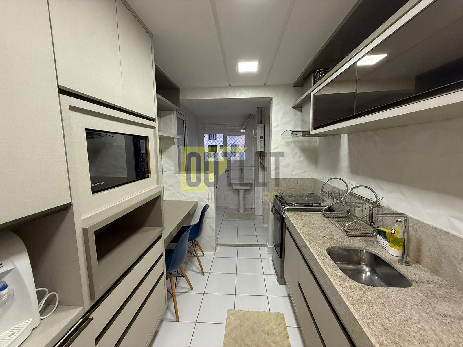 Cozinha equipada com armários planejados e eletrodomésticos modernos