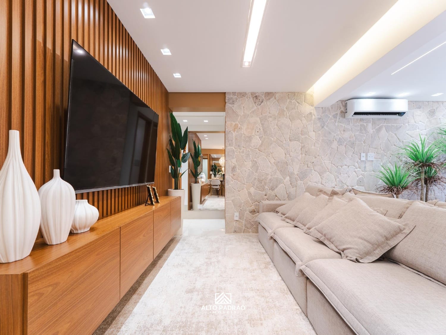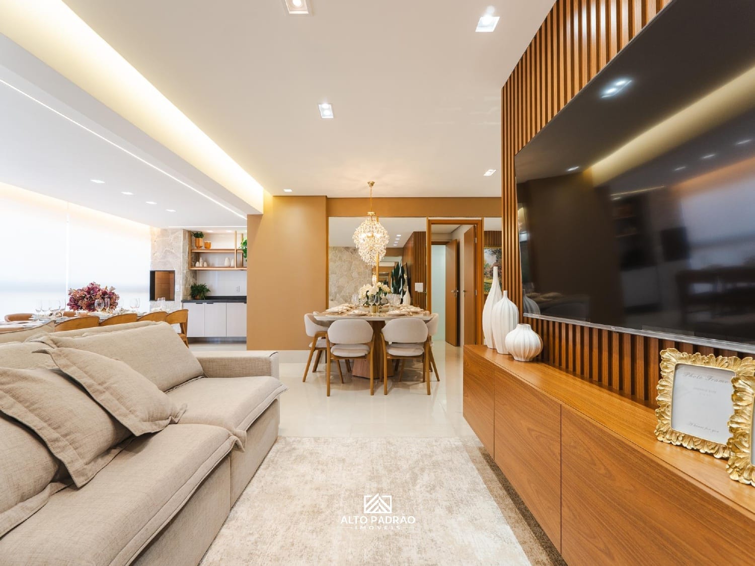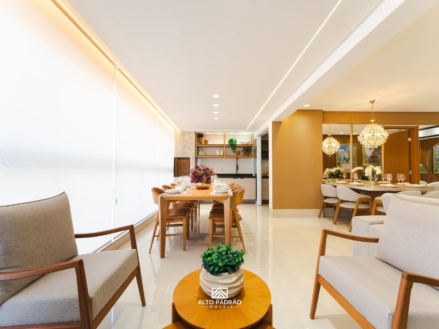 -Integração entre a sala, varanda gourmet e cozinha;