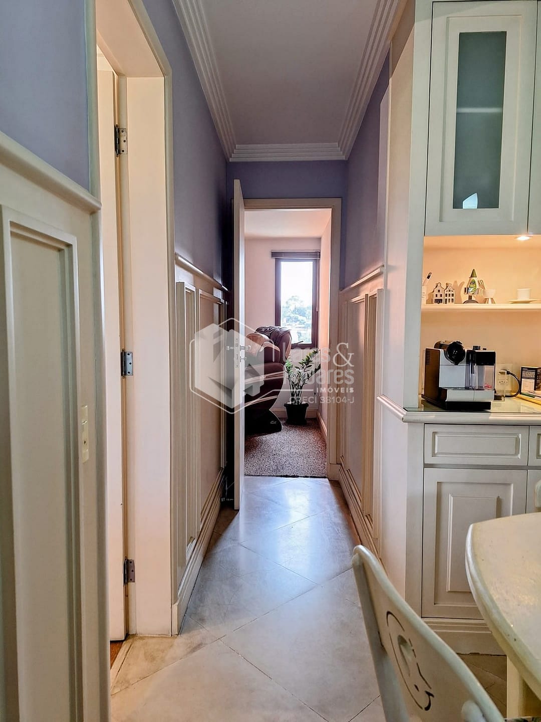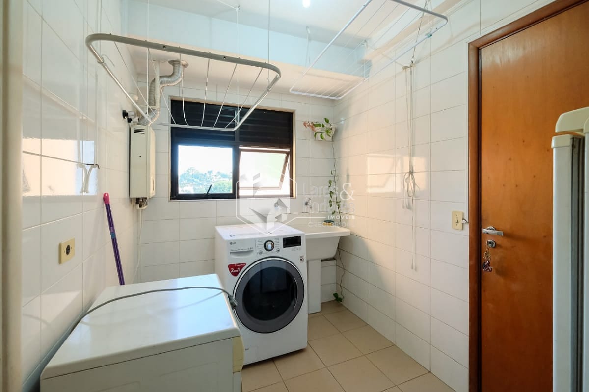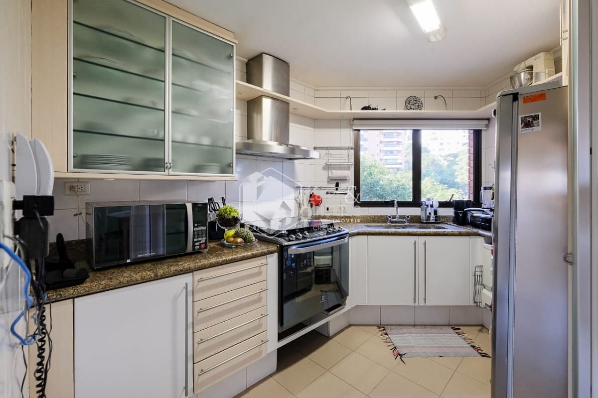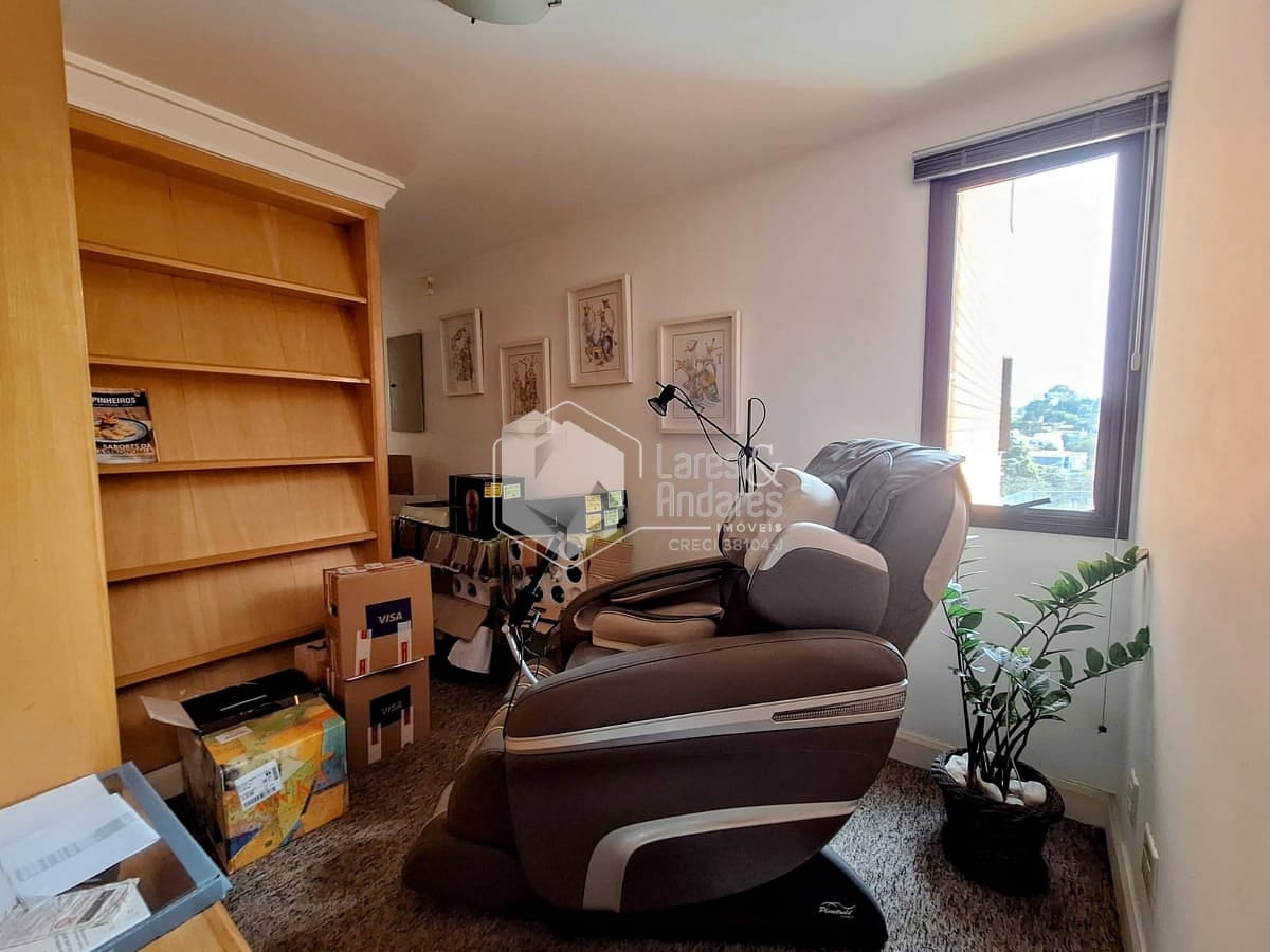 Na área íntima, a planta original tem 4 dormitórios, sendo 3 suítes. Hoje está com 2 suítes e um escritório (a 3ª suíte foi convertida em closet para a suíte master). Há uma pequena sala ligando a área íntima à sala de almoço, cozinha e área de serviço. Esta saleta pode ser facilmente ampliada com a incorporação das dependências de empregada, ensejando seu uso como escritório ou outra finalidade. Completando a planta de 177m², uma ótima cozinha com luz direta, muitos armários planejados e o conforto de uma despensa, além uma área de serviço ampla e arejada com dependências de empregada.