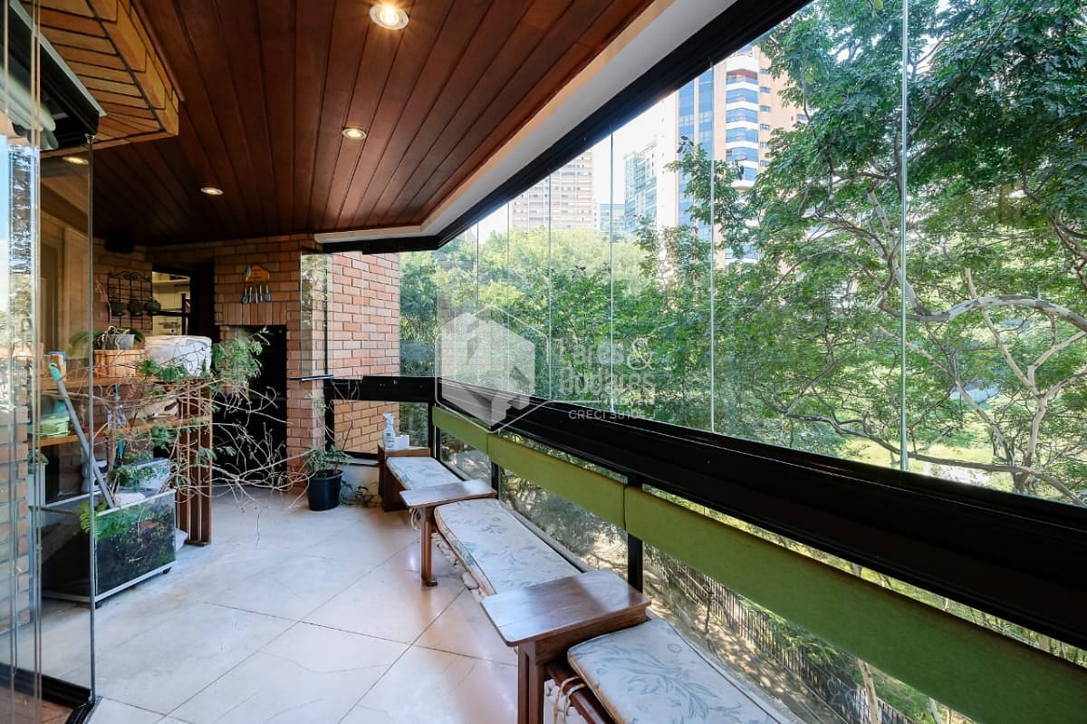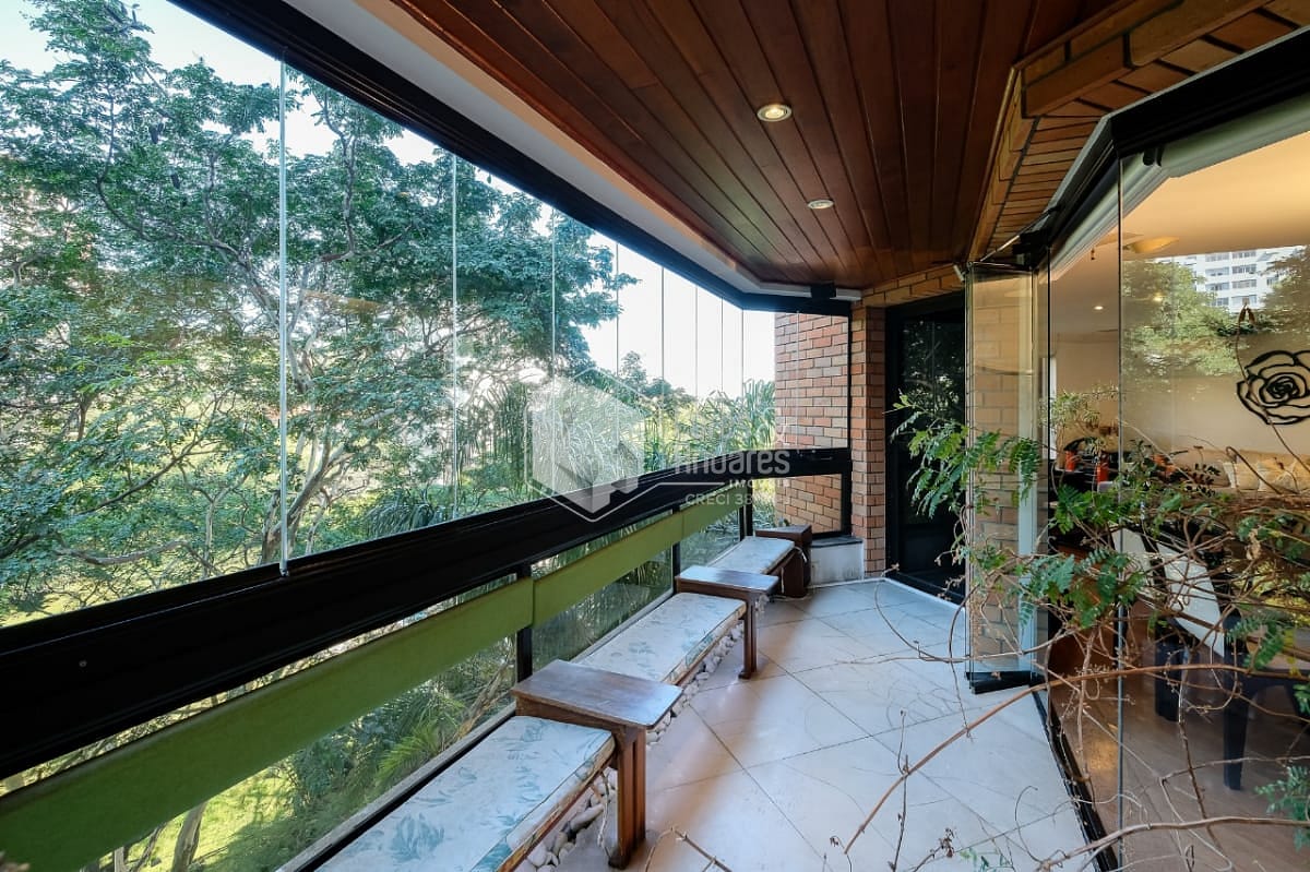 Na área social, um amplo living envidraçado com vista verde e uma deliciosa luminosidade natural filtrada pelas árvores, criando uma atmosfera mágica em certas horas do dia. A varanda gourmet circunda toda a área social com acessos separados para a sala de estar, sala de jantar e sala de almoço. Estrategicamente situada no ponto mais distante da sala de estar, a área da churrasqueira conta com um passa prato para a cozinha. Um lavabo próximo à entrada principal completa a área social.