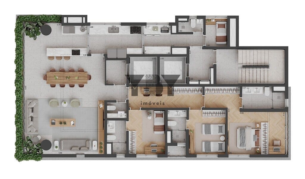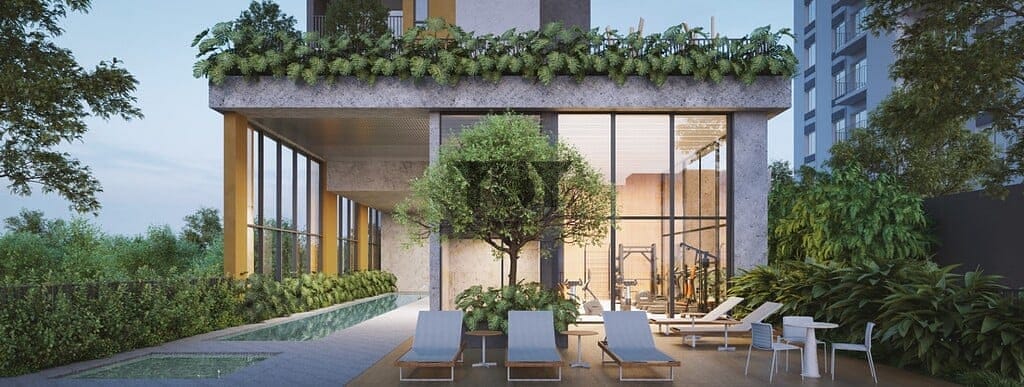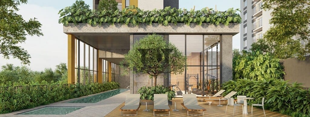 A composição arquitetônica é destacada pelas varandas que percorrem toda a extensão das residências e dão unidade à torre pelo respiro visual. Os apartamentos se abrem para uma vegetação exuberante. Nas áreas de convívio um paisagismo autoral pontua os espaços com espécies naturais. A ventilação e luminosidade naturais nos ambientes são garantidas pelas amplas esquadrias do piso ao teto. Preço e disponibilidade do imóvel sujeitos a alteração sem aviso prévio.