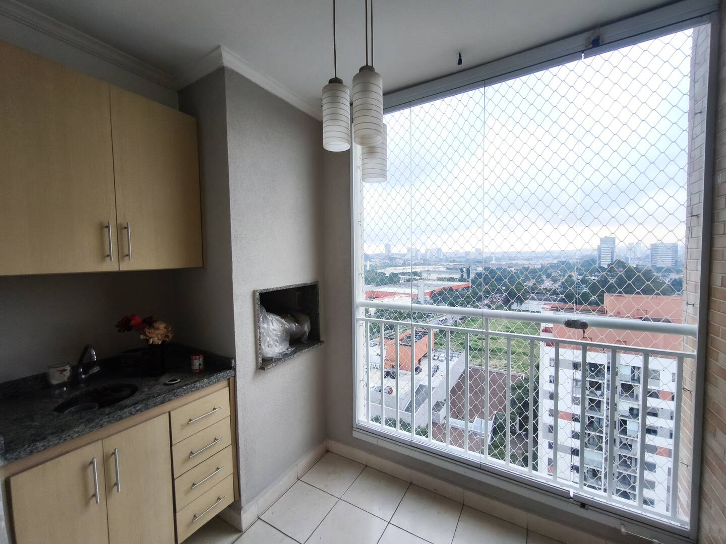 A área social ganha destaque com varanda gourmet, churrasqueira, cortina de vidro e vista livre com belo pôr do sol, criando um diferencial importante para quem valoriza uso real da varanda no dia a dia. A cozinha possui armários planejados, assim como um dos quartos de solteiro e os banheiros. A iluminação embutida reforça a sensação de organização e melhora a percepção de acabamento.