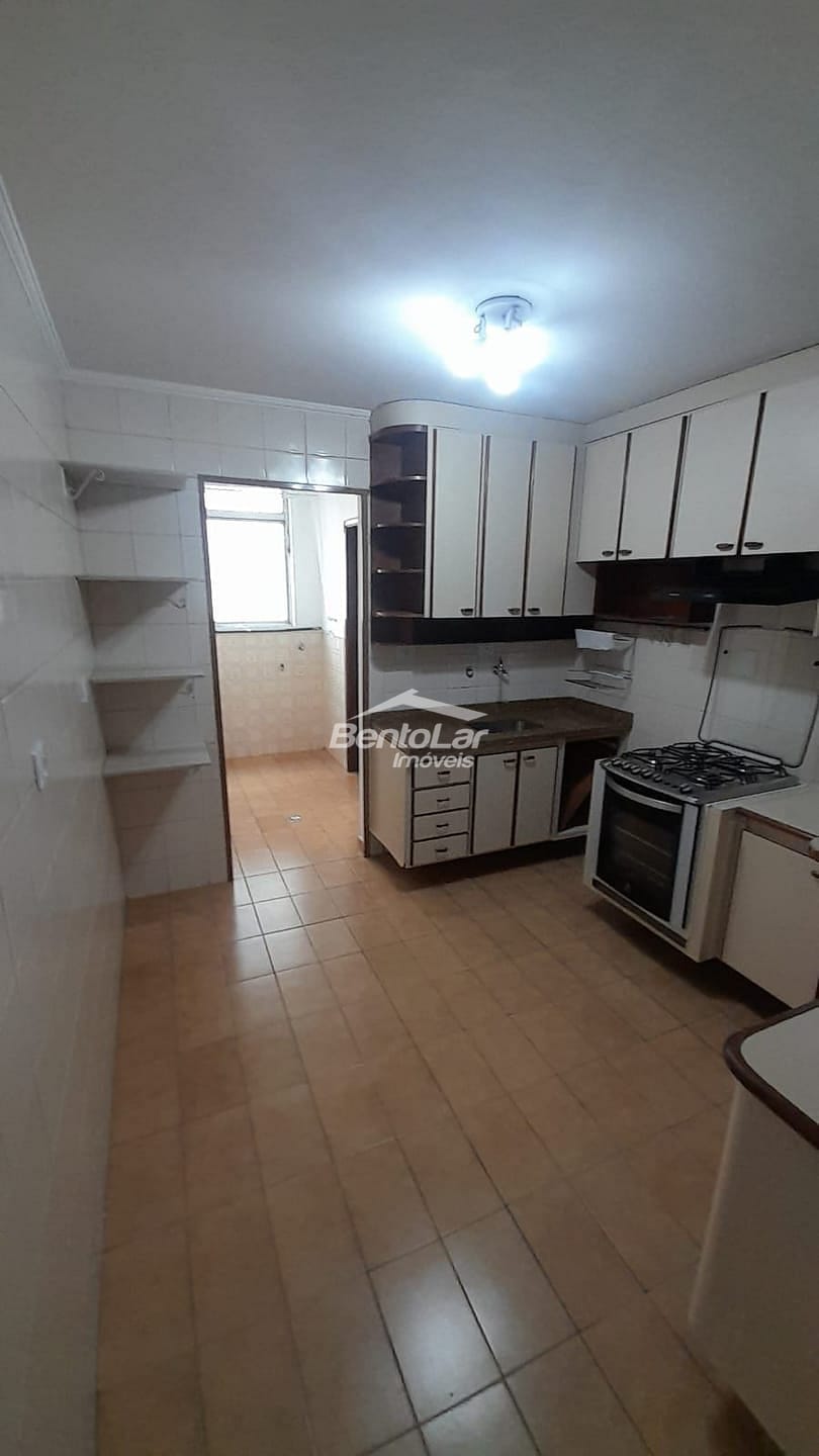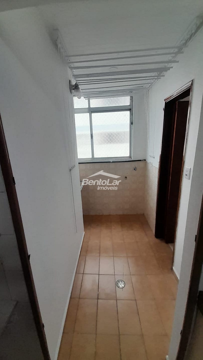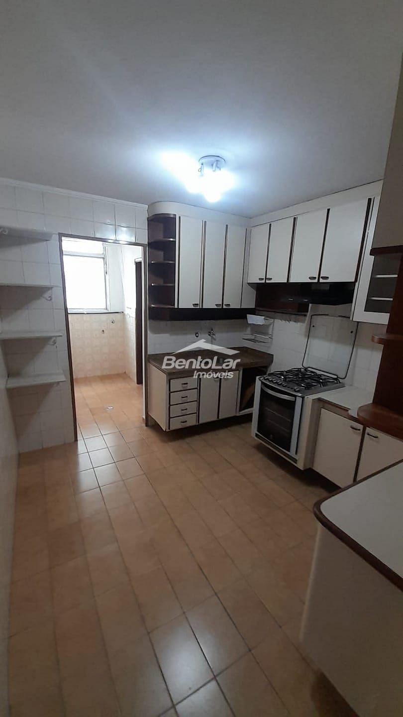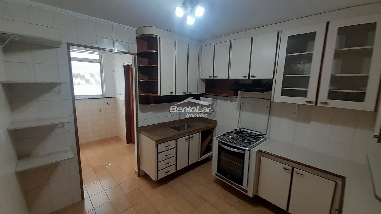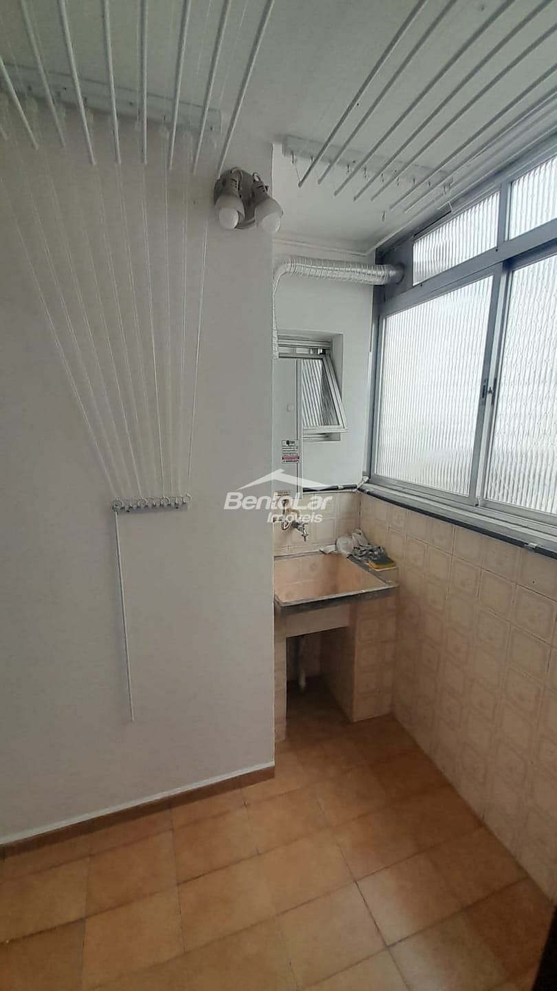Apartamento de 3 dormitórios com armários, sala com sacada, cozinha com armários, banheiro, lavabo, área de serviço e uma vaga de garagem.