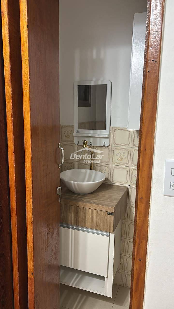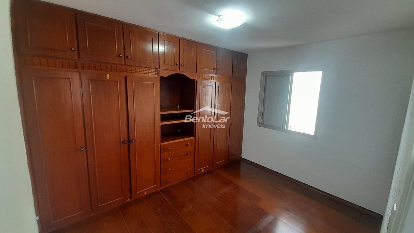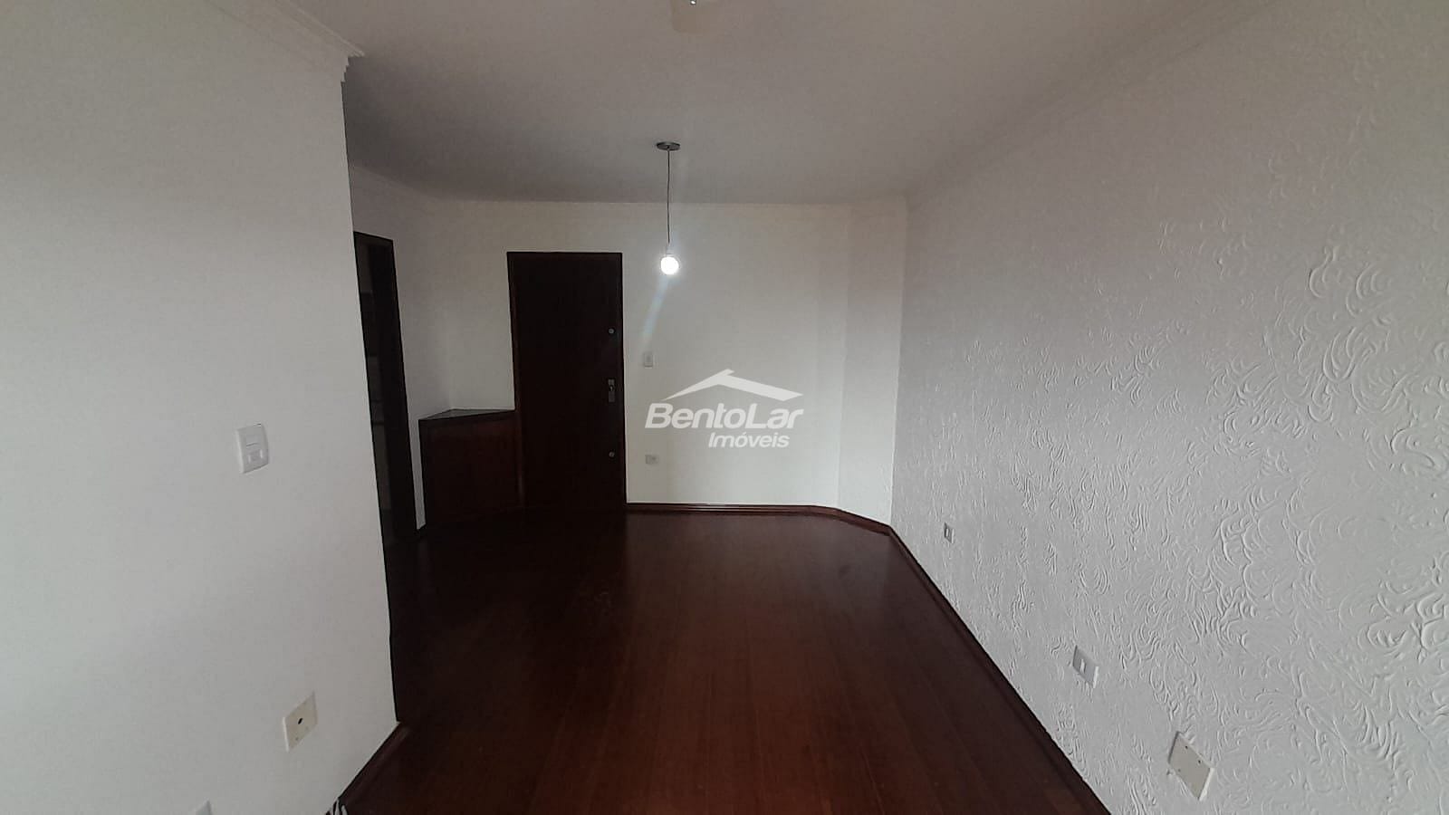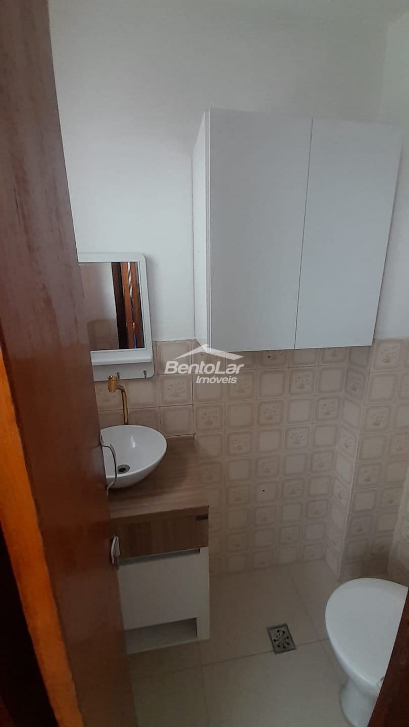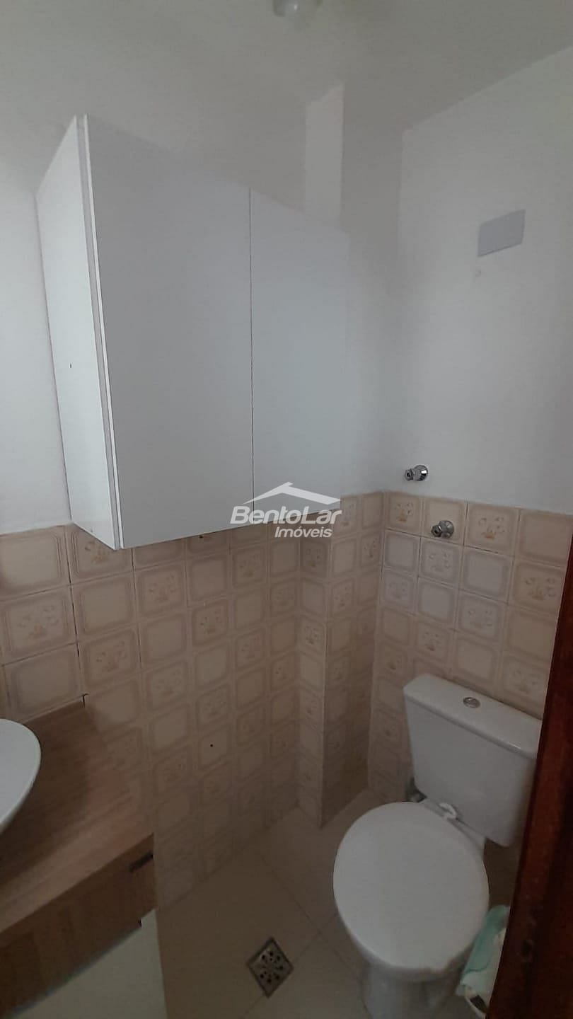 Apartamento de 3 dormitórios com armários, sala com sacada, cozinha com armários, banheiro, lavabo, área de serviço e uma vaga de garagem.