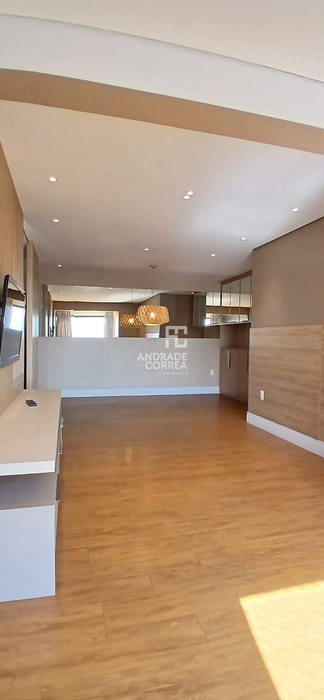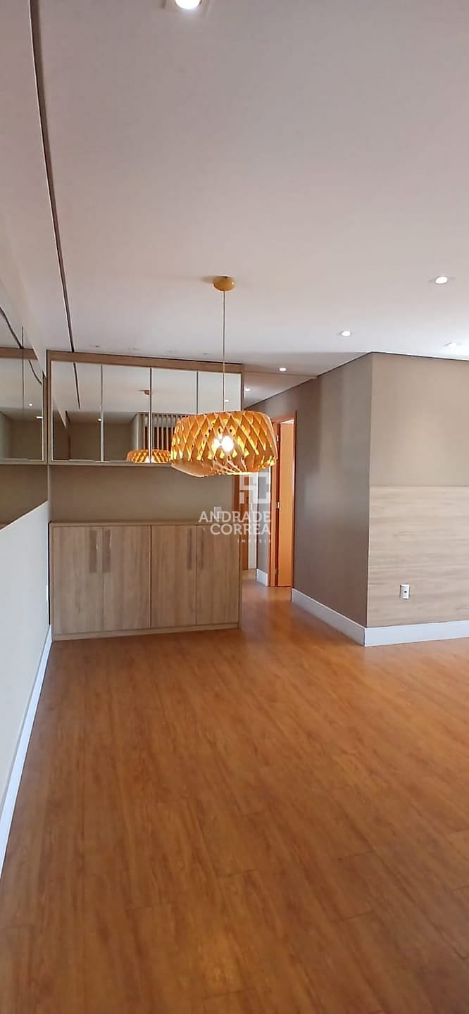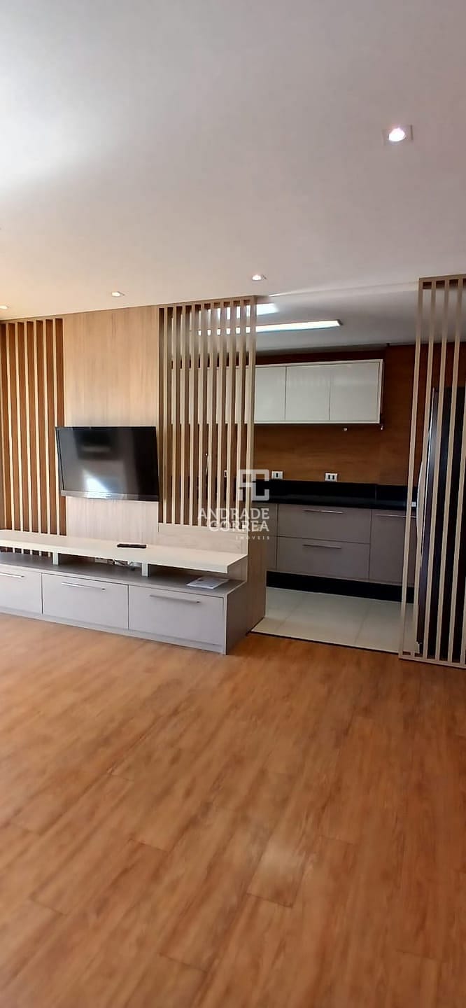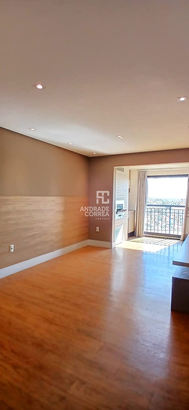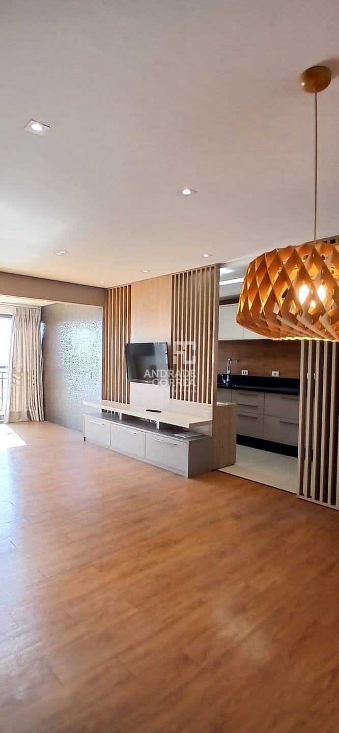 Sala de estar/tv, sala de jantar, cozinha integrada, uma suíte, dois dormitórios, um banheiro, varanda gourmet, área de serviço e duas vagas de garagem.