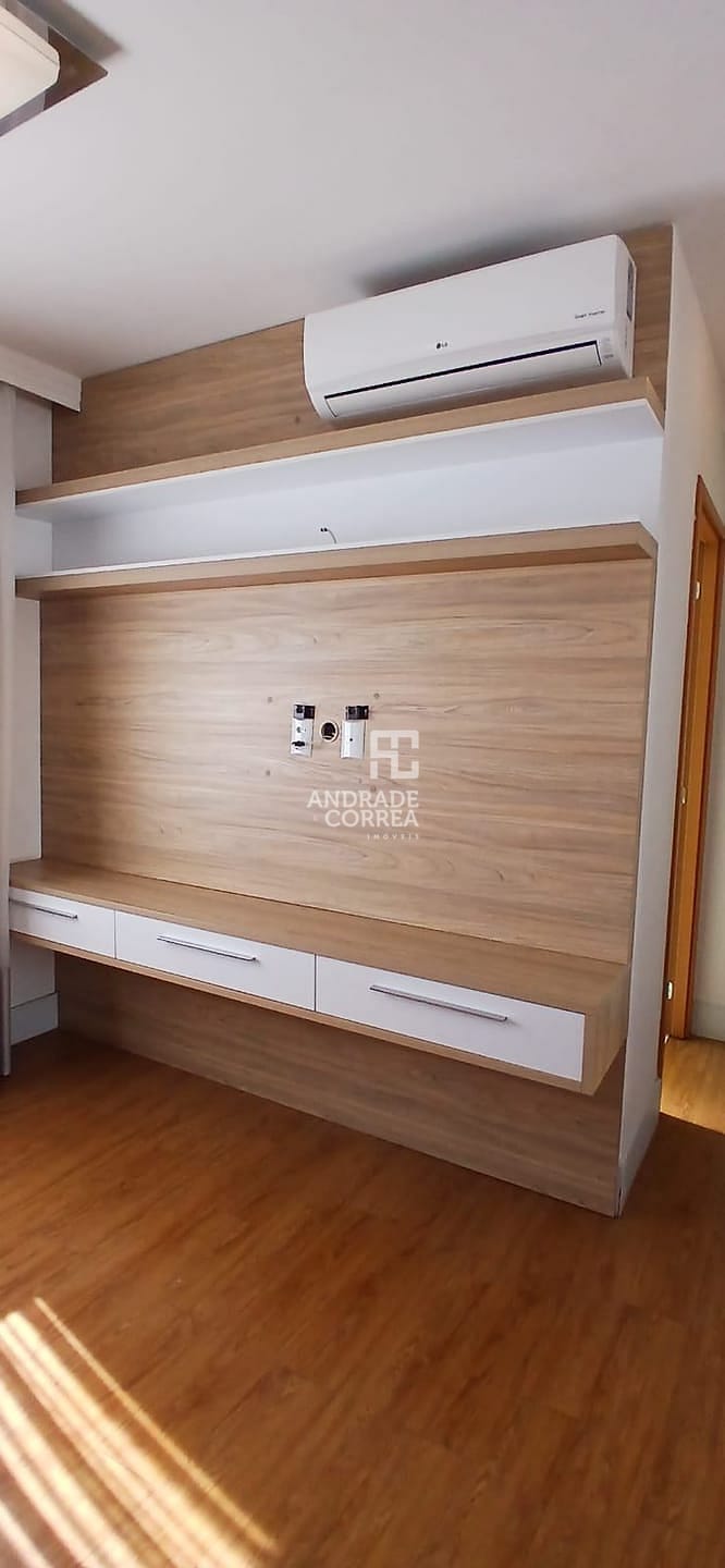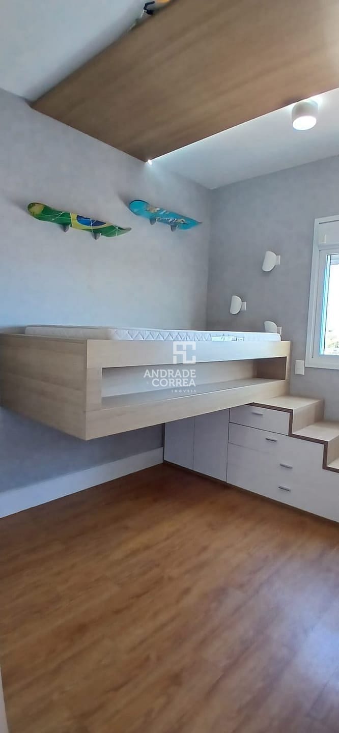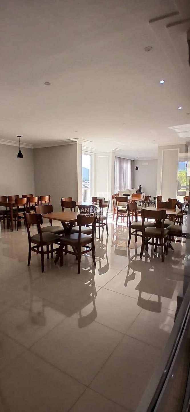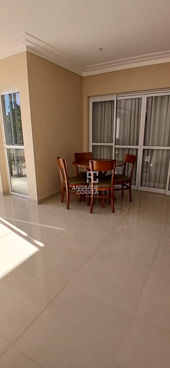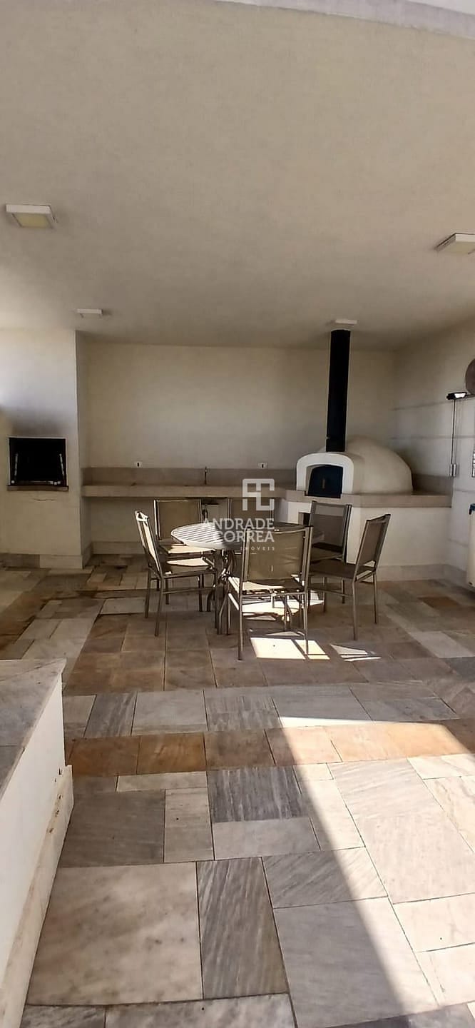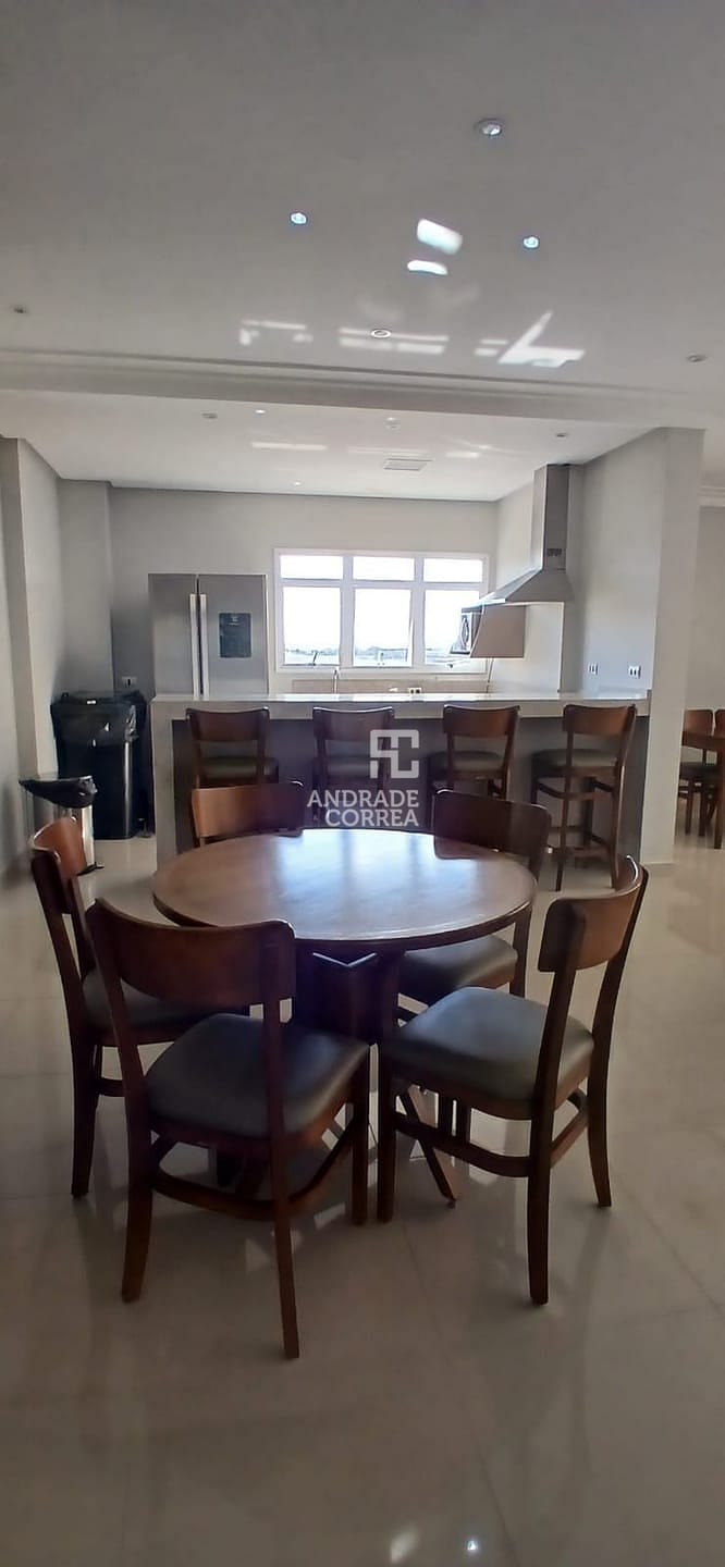 Sala de estar/tv, sala de jantar, cozinha integrada, uma suíte, dois dormitórios, um banheiro, varanda gourmet, área de serviço e duas vagas de garagem.