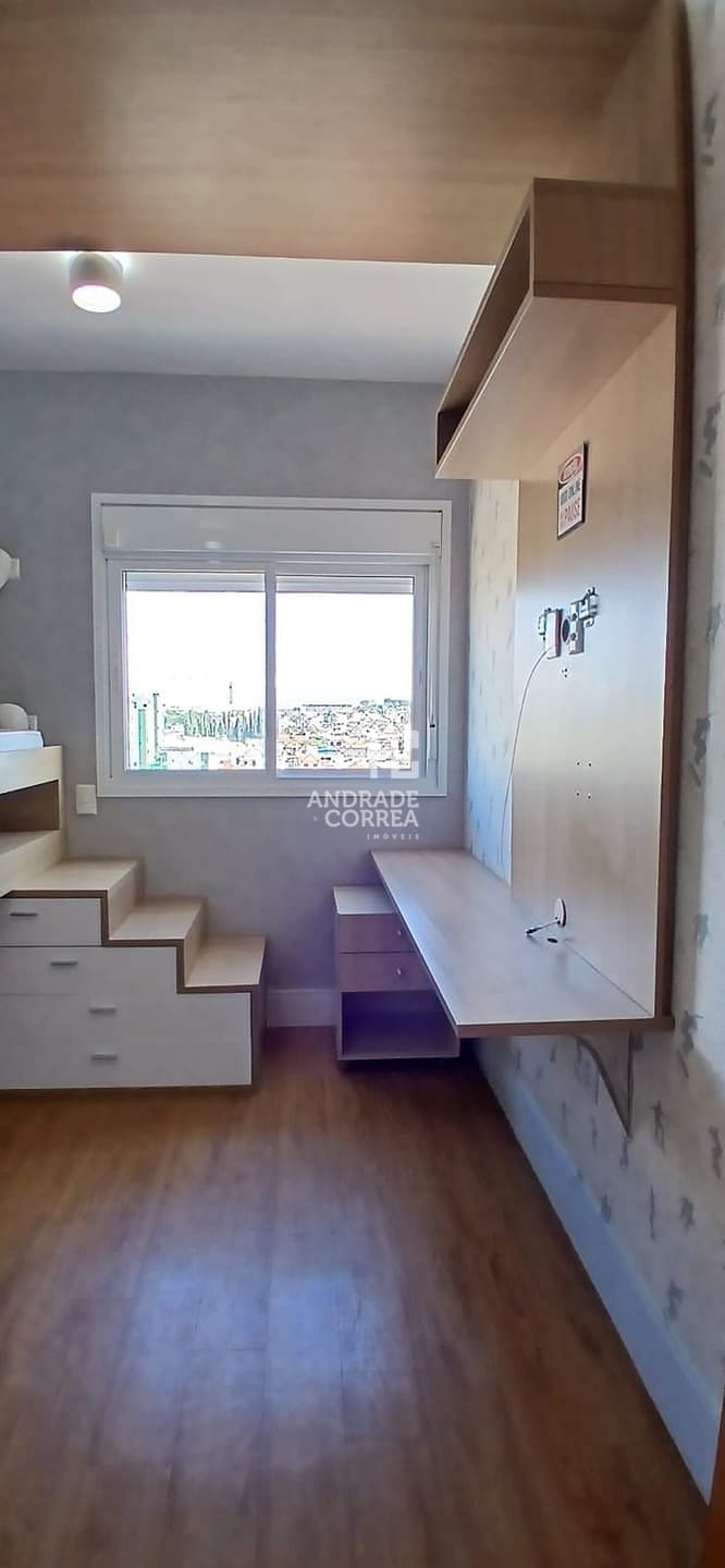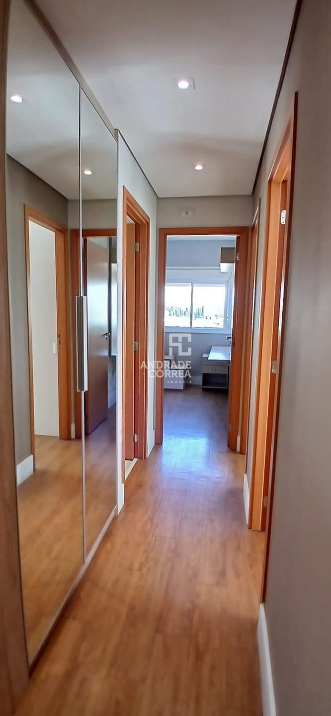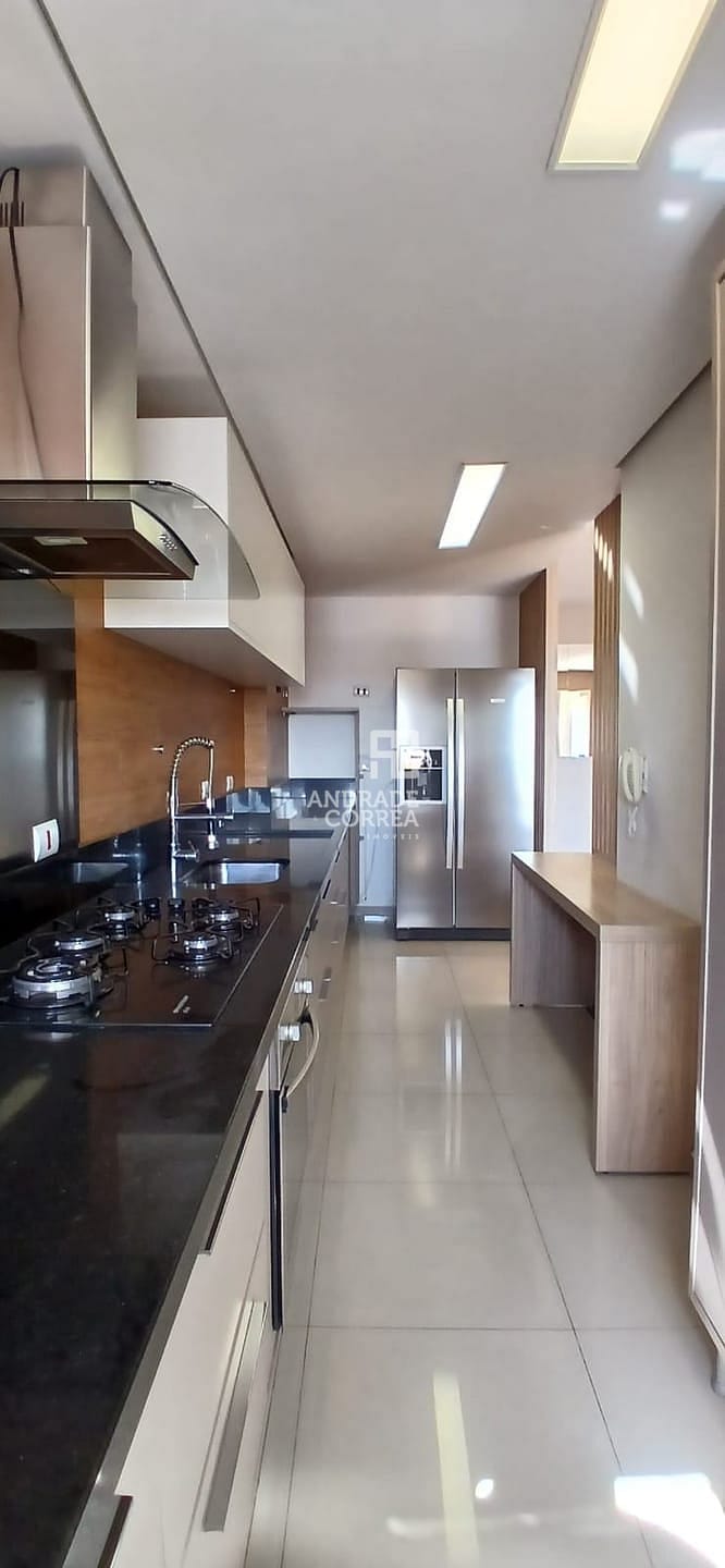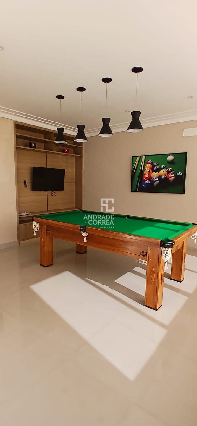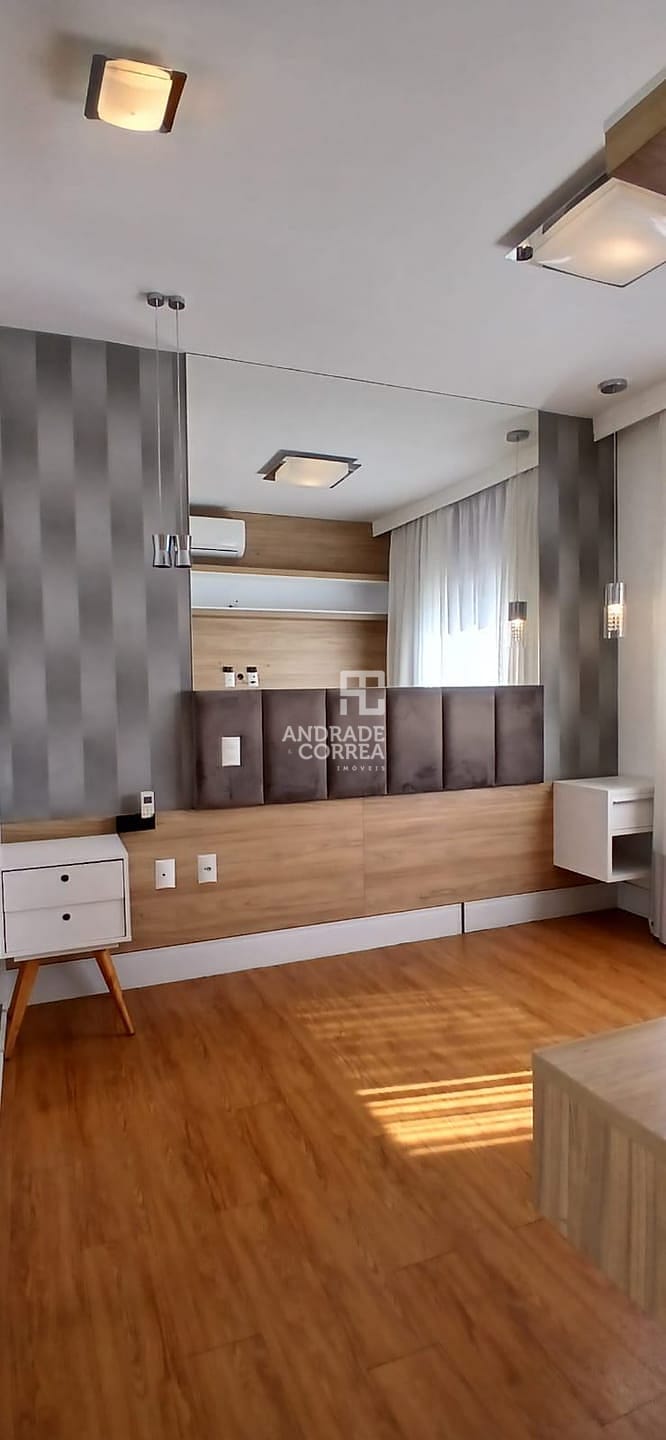 Sala de estar/tv, sala de jantar, cozinha integrada, uma suíte, dois dormitórios, um banheiro, varanda gourmet, área de serviço e duas vagas de garagem.