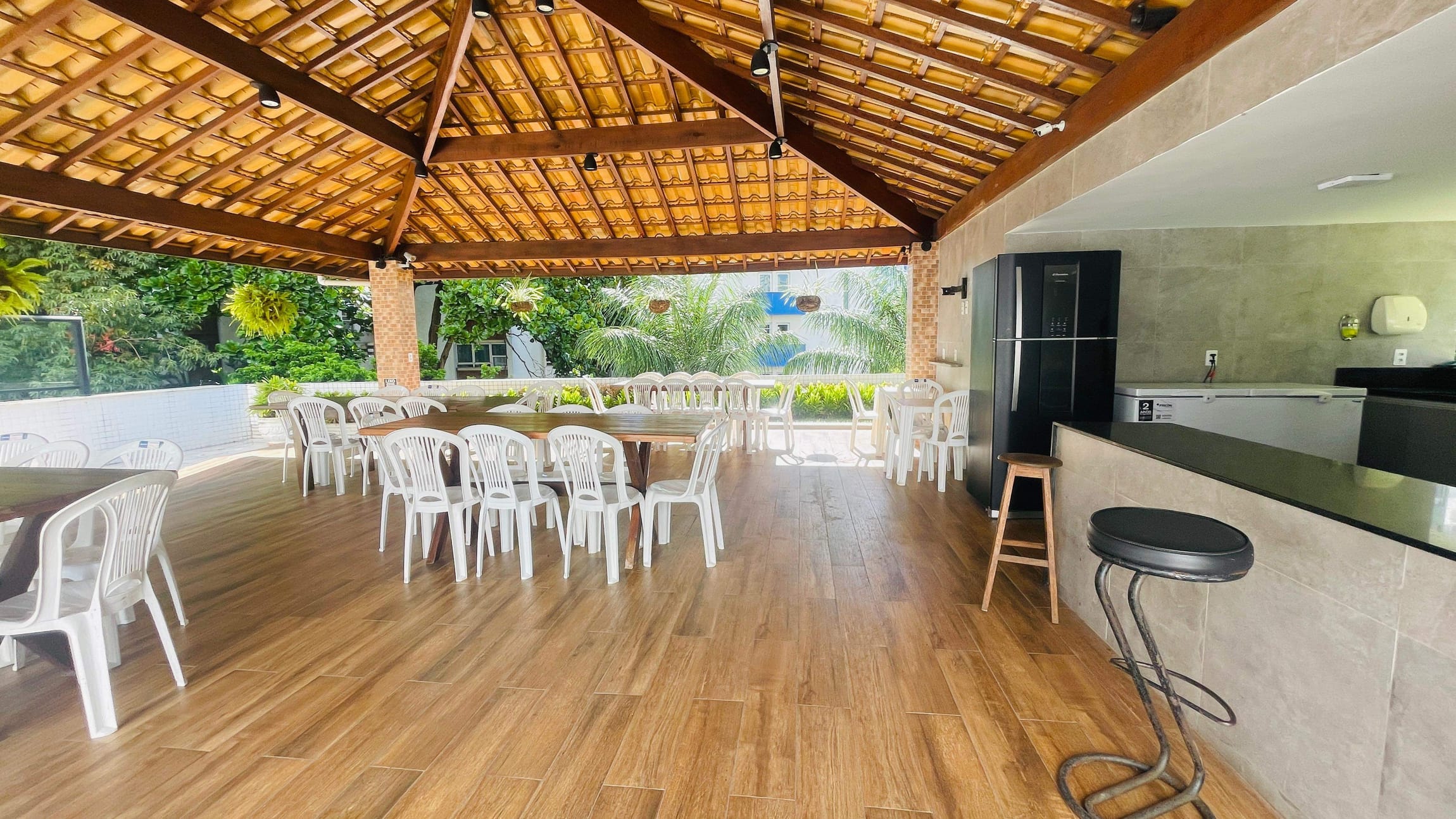 Salão de festas com área gourmet