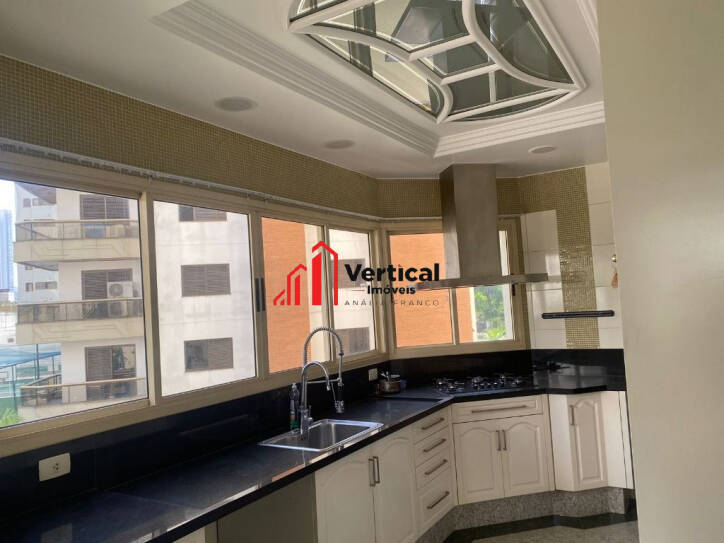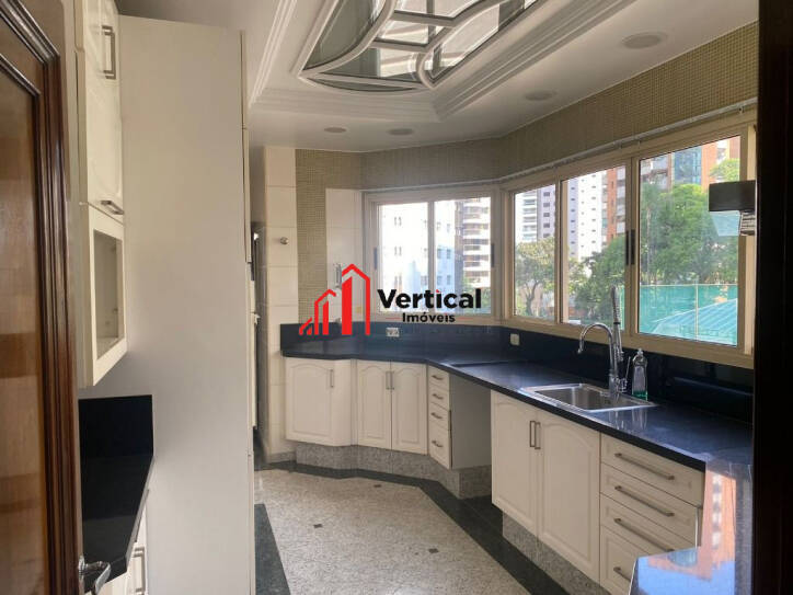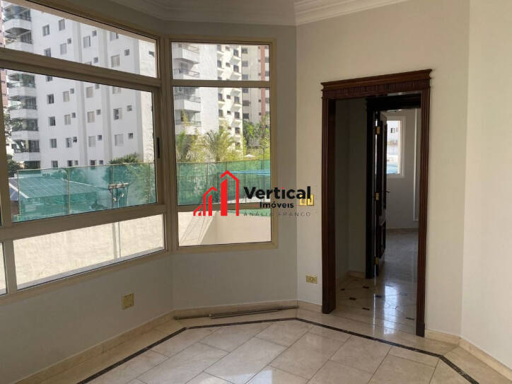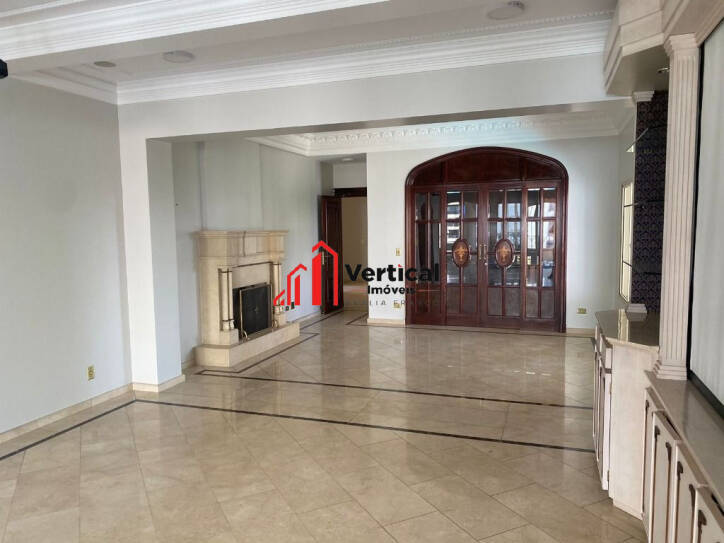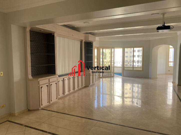 PRÉDIO COM TORRE ÚNICA, 15 ANDARES. O APARTAMENTO ESTÁ COM 4 SUITES ,TODAS COM CLOSET, 3 COM HIDRO E 3 COM SACADAS, SALAS : TV, ALMOÇO, JANTAR, ESTAR COM TRÊS AMBIENTES, LAVABO,LAREIRA , ESCRITÓRIO ,COZINHA PLANEJADA, ÁREA DE SERVIÇO COM ARMÁRIOS, 2 QUARTOS DE EMPREGADA , WC EMPREGADA, ENTRADA DE SERVIÇO, 2 ELEVADORES SOCIAL E SERVIÇOS, VARANDA GRANDE COM CHURRASQUEIRA E PISCINA (HOJE COBERTA COM DECK REMOVÍVEL.), ADEGA CAPACIDADE PARA 200 GARRAFAS, 5 VAGAS, DEPÓSITO, QUARTO PARA MOTORISTA NO PRIMEIRO ANDAR. LAZER NO TÉRREO CHURRASQUEIRA, FORNO DE PIZZA, QUADRA POLIESPORTIVA, FITNESS, PLAY GROUND, SAUNA, SALÃO DE JOGOS, SALÃO DE FESTAS.ESTUDA PERMUTA DE MENOR VALOR!!!CONSULTE NOSSO SITE : WWW.VERTICALIMOVEIS.COM.BR - TEL.: ver telefone.