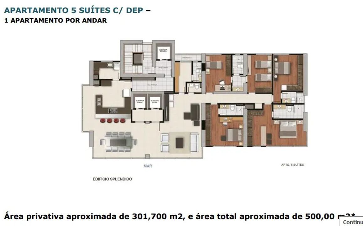 Área privativa aproximada de 307,m² e área total aproximada de 525m².