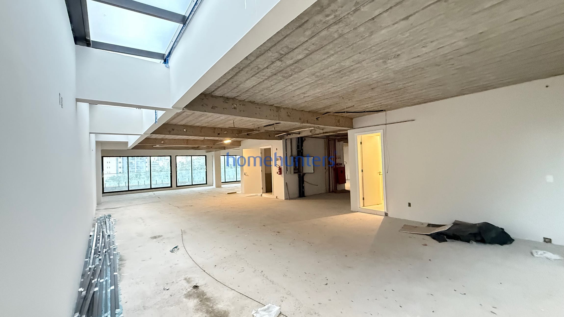 Todo o imóvel em piso elevado para instalação elétrica / hidráulica, com iluminação natural através de clarabóia e espaço verde. Acesso ao andares por elevador e escadaria.