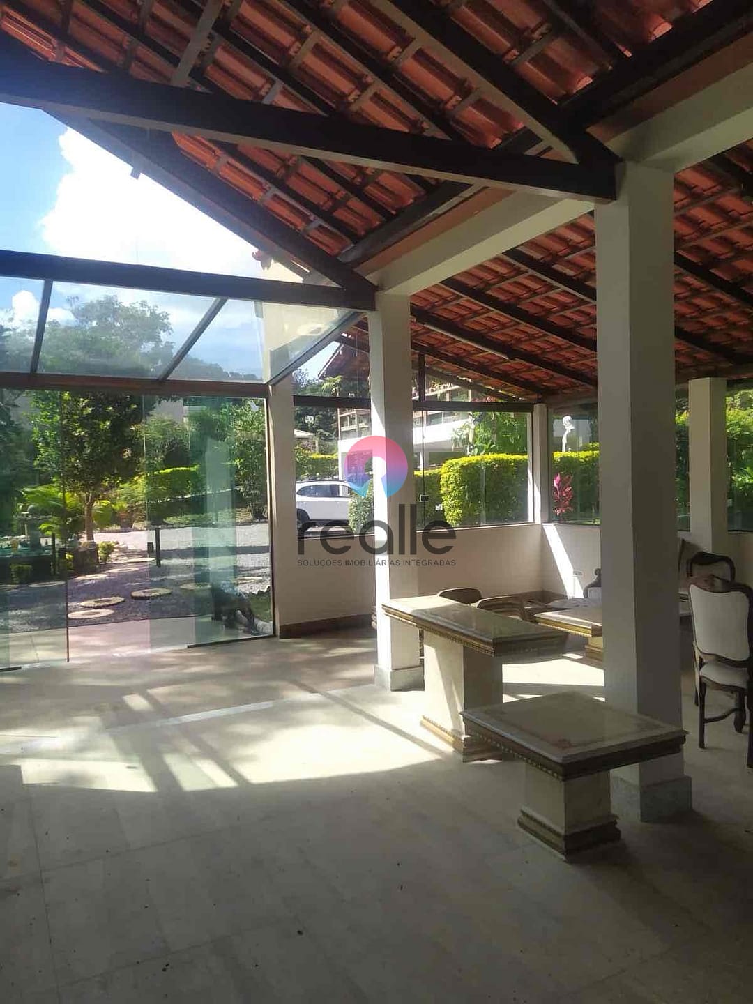 Situado na Gleba 5 do Condomínio Nossa Fazenda, após a lagoa principal, o restaurante e espaço comum do mesmo, com cachoeiras artificiais, prainha, entre outros benefícios.