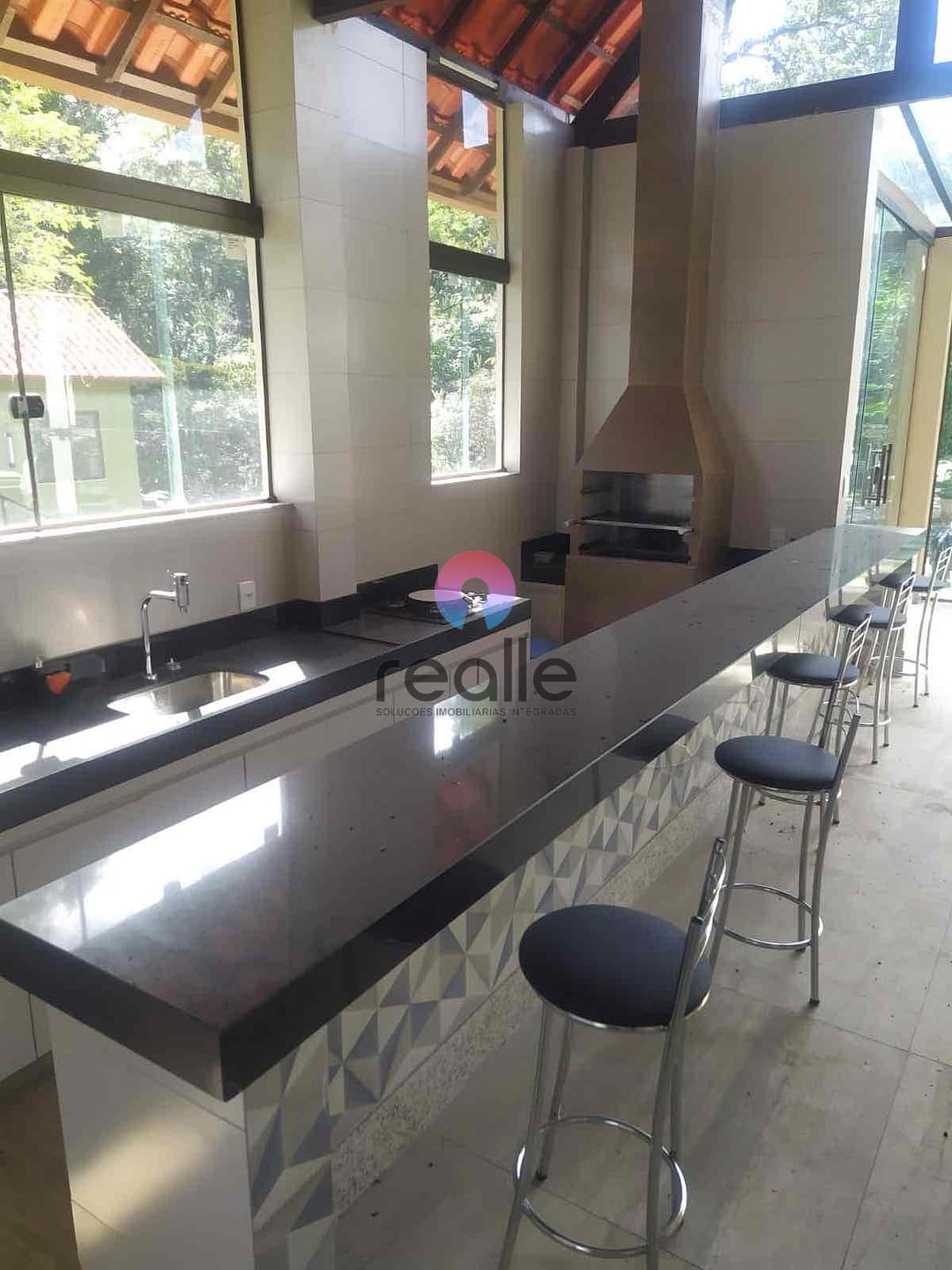 O espaço Gourmet é diferenciado, novo, com projeto arquitetônico envolvente. Possui ainda campo gramado, espaço para piscina.
