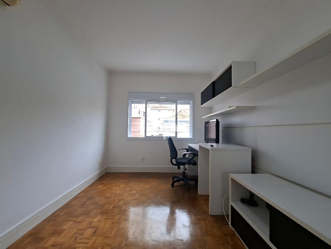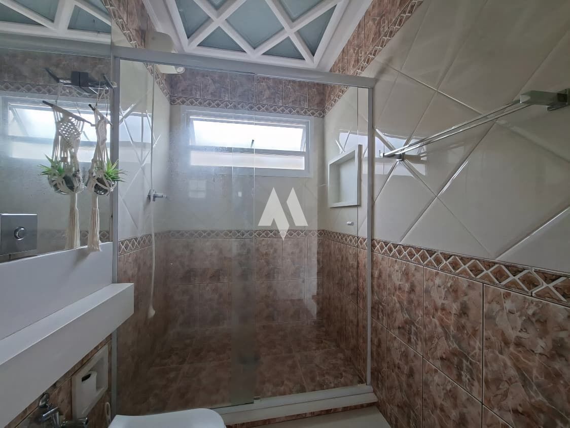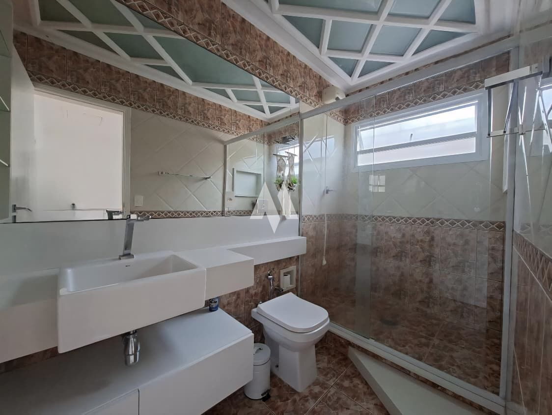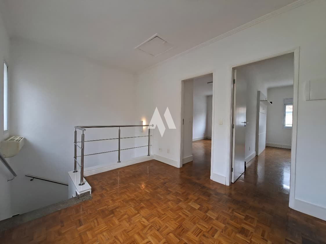 No piso superior, são 2 quartos amplos (5 m x 3 m cada), janelas automatizadas, ar condicionado nos dois dormitórios, closet no quarto do casal e armário embutido com móveis planejados no segundo quarto, além de um banheiro grande e uma saleta aconchegante.