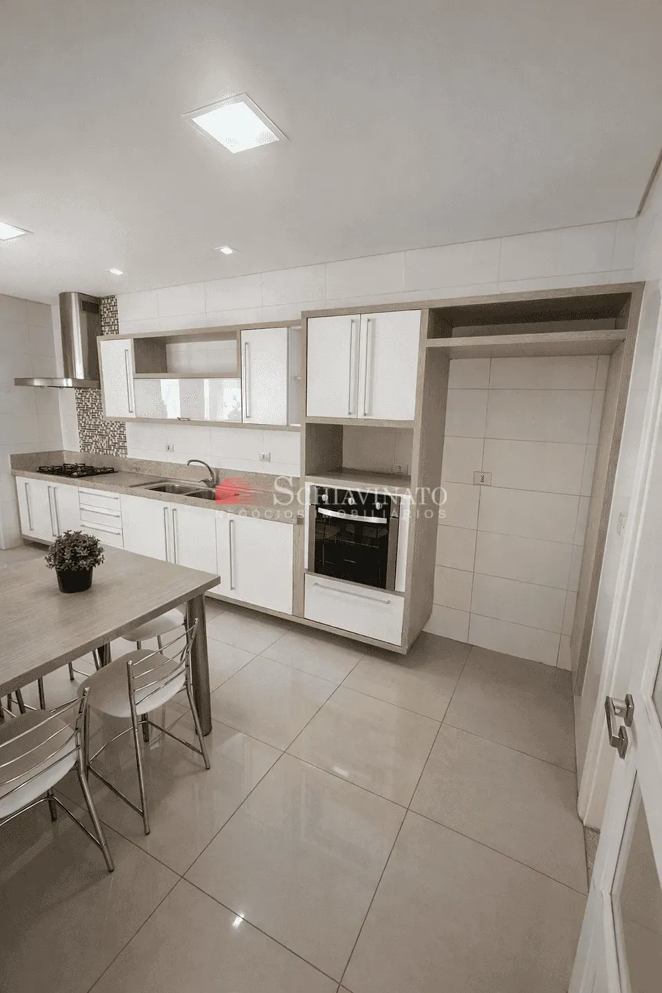 O imóvel dispõe de duas vagas de garagem e acabamento de alto padrão em todos os ambientes.