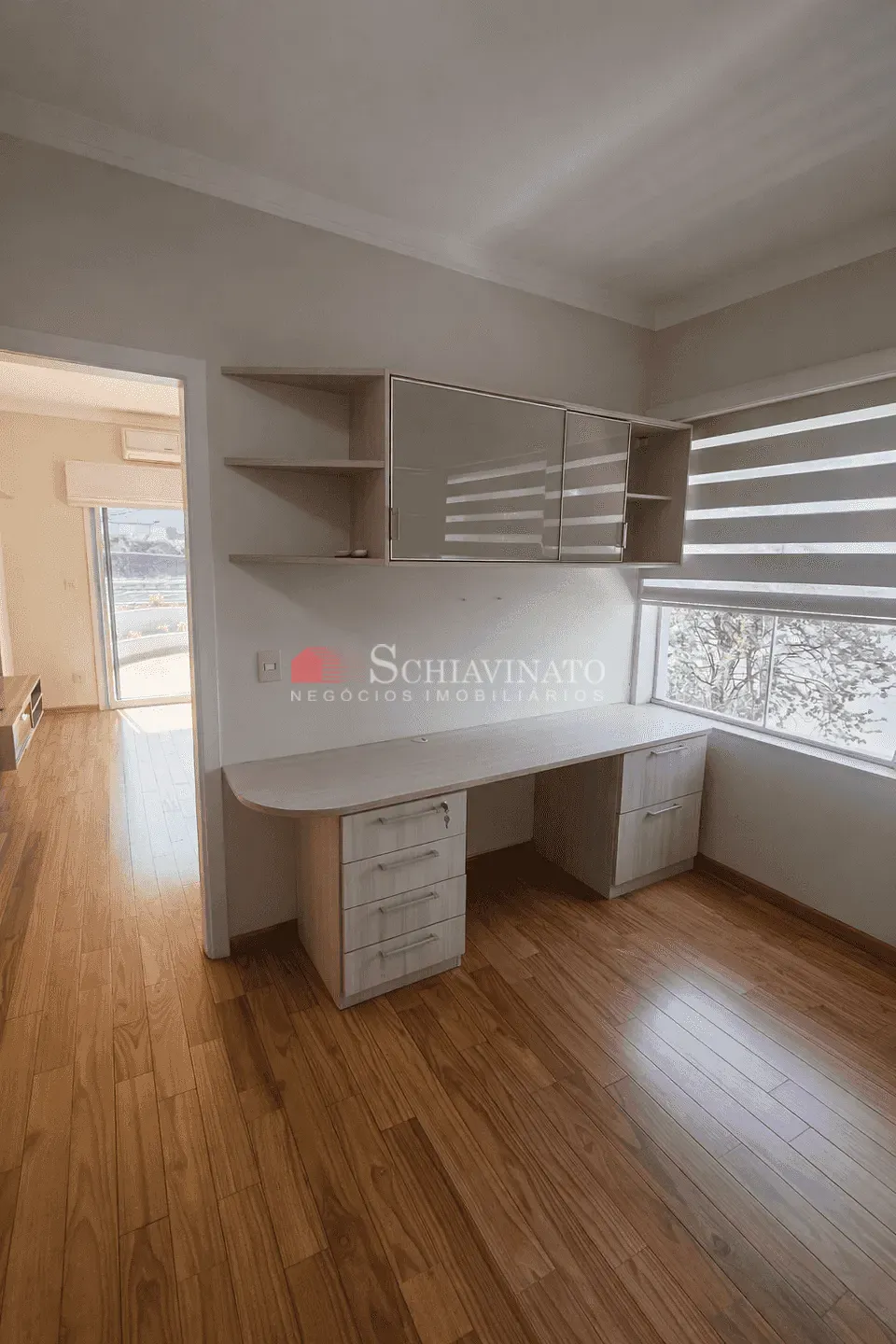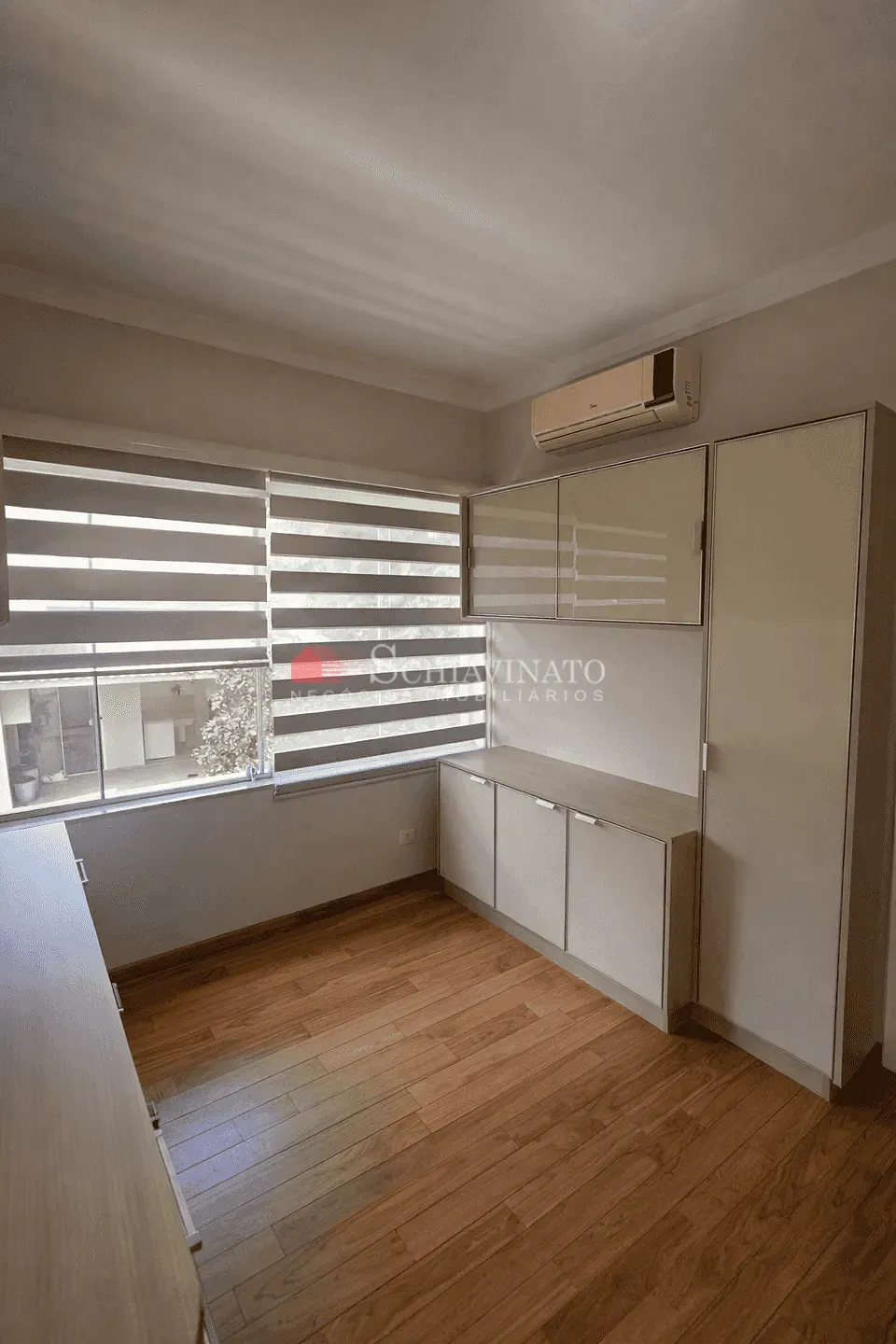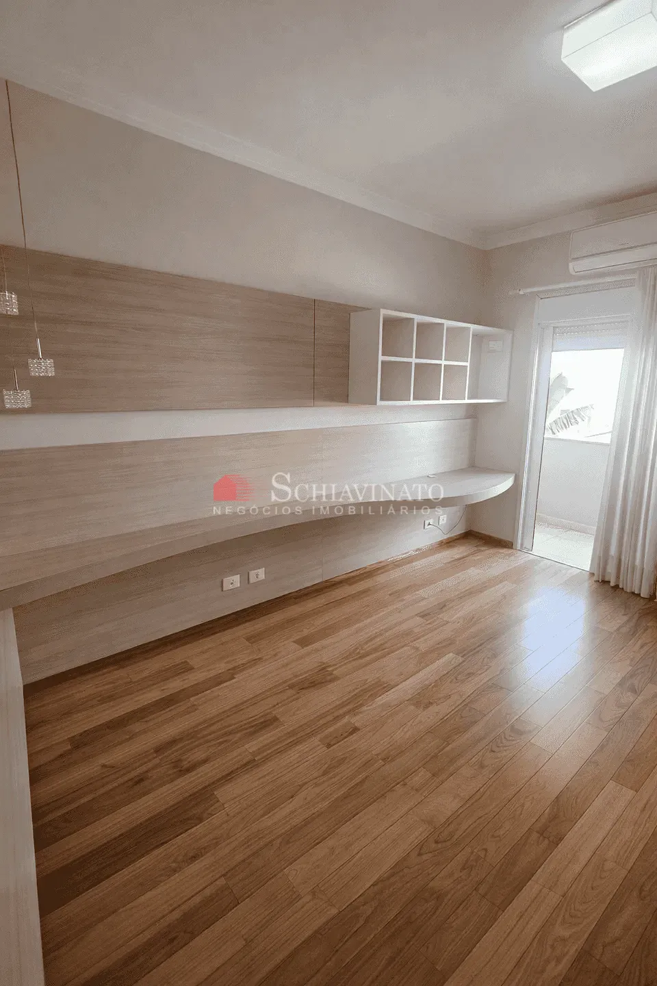 No pavimento superior, a área íntima oferece três suítes planejadas, todas equipadas com ar-condicionado e sacada, garantindo conforto e privacidade. A suíte máster se destaca pelo amplo espaço, closet e uma generosa sacada. O andar conta ainda com um hall íntimo aconchegante e persianas nos dormitórios, proporcionando ainda mais conforto térmico e luminoso.