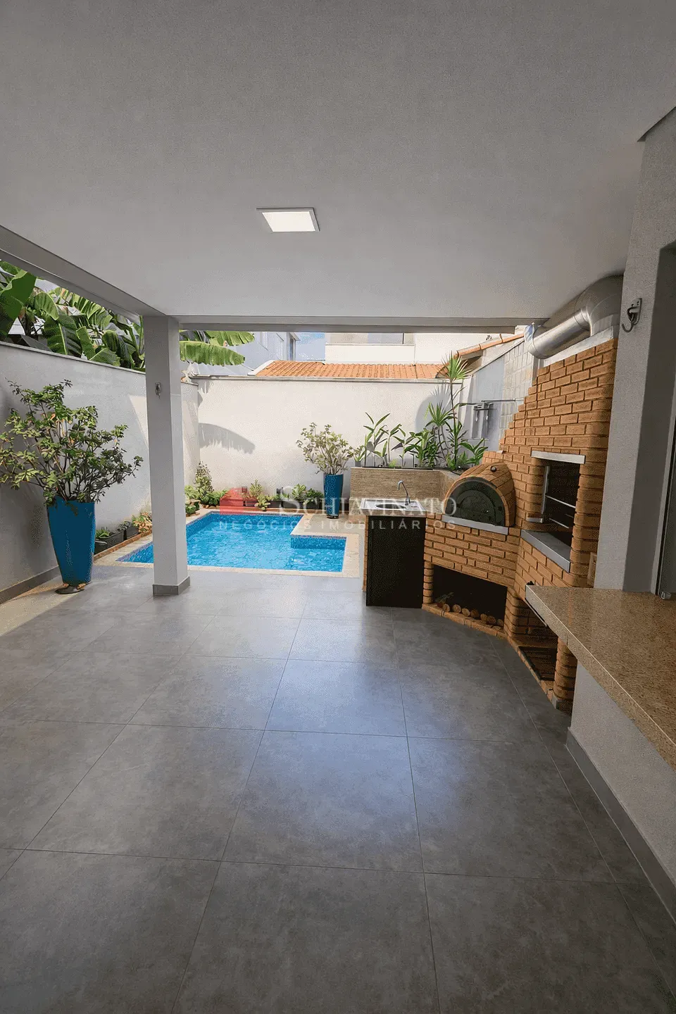 Na área externa, o destaque fica por conta de um espaço gourmet impecável, equipado com churrasqueira e forno de pizza, perfeito para momentos de lazer e confraternização. A piscina, harmoniosamente integrada ao paisagismo cuidadosamente elaborado, cria um ambiente acolhedor e sofisticado para toda a família.