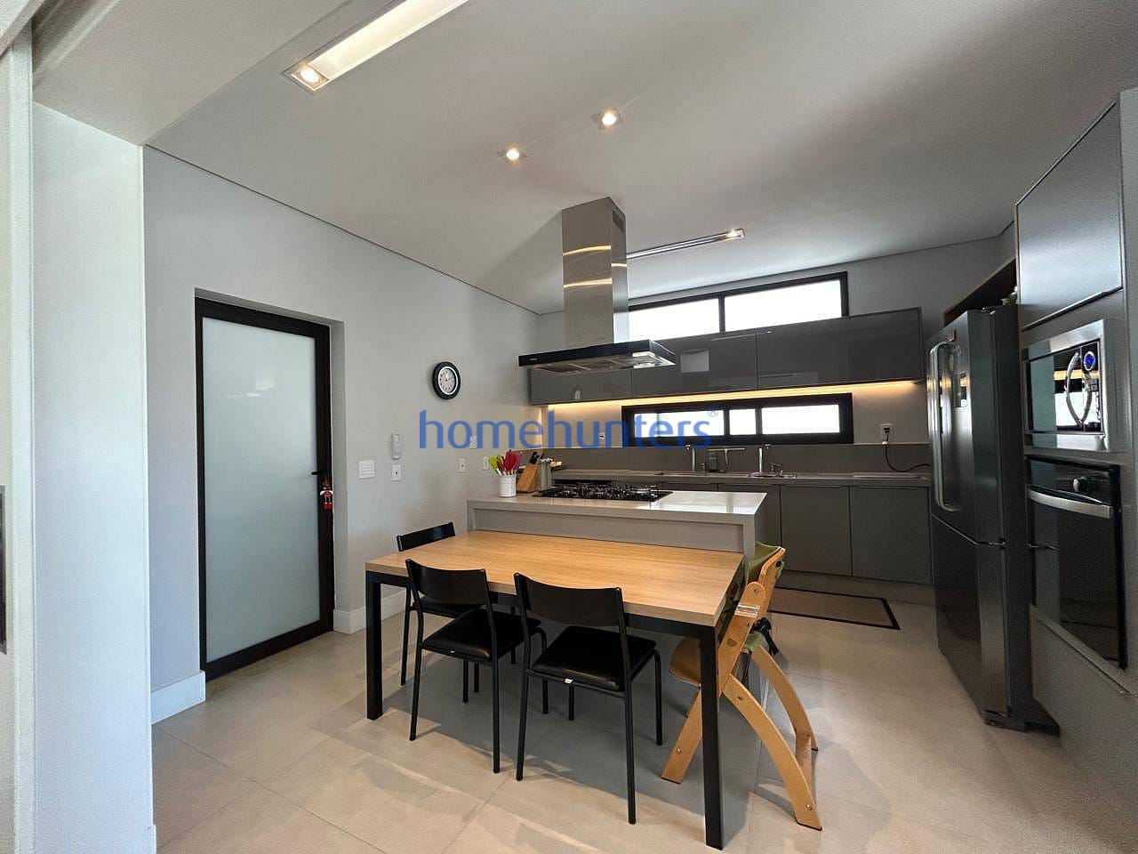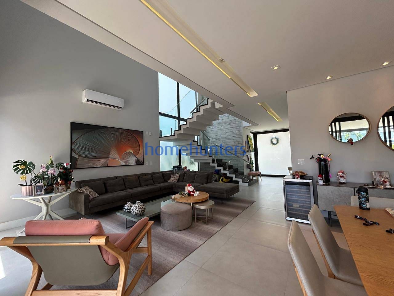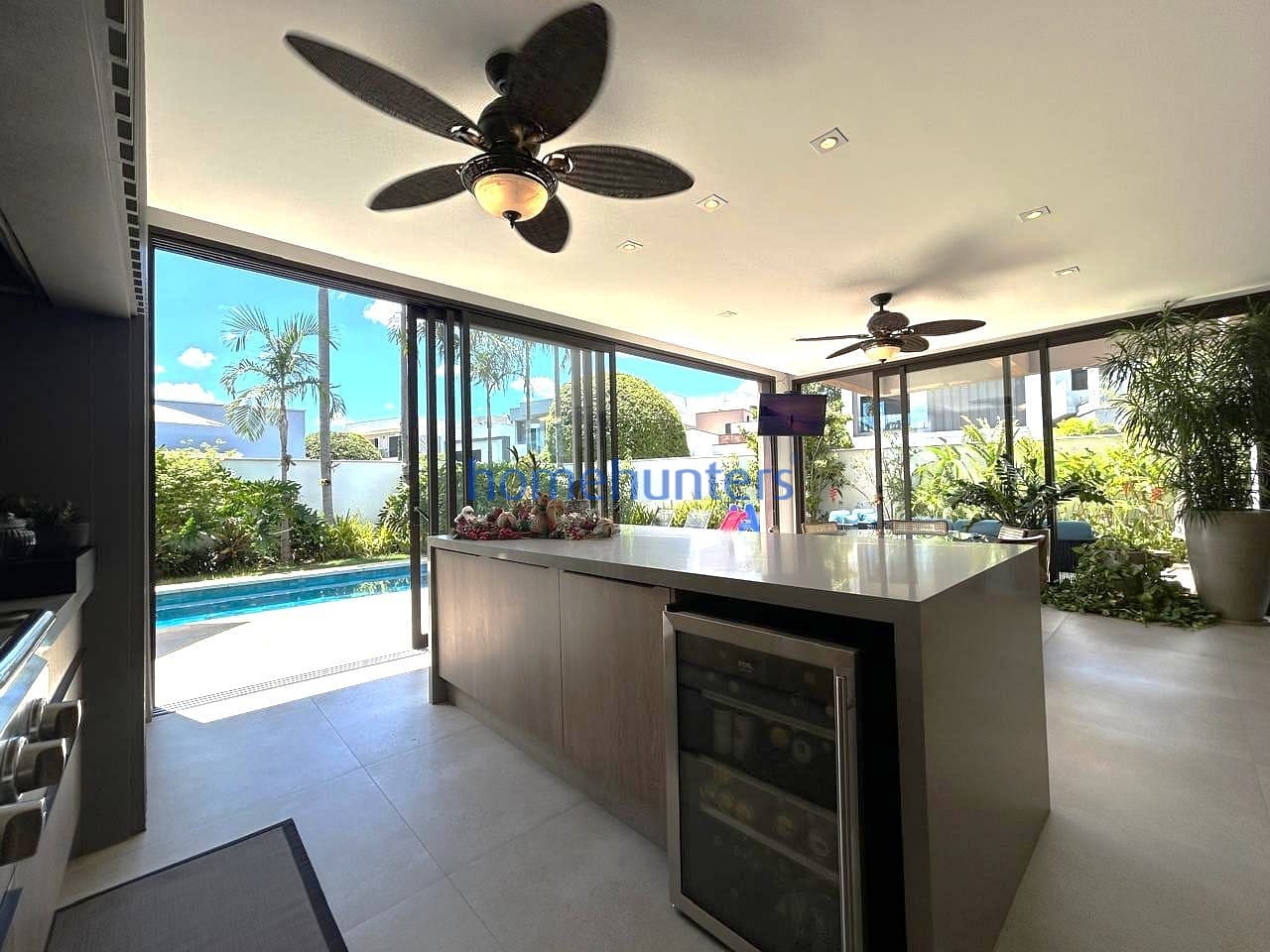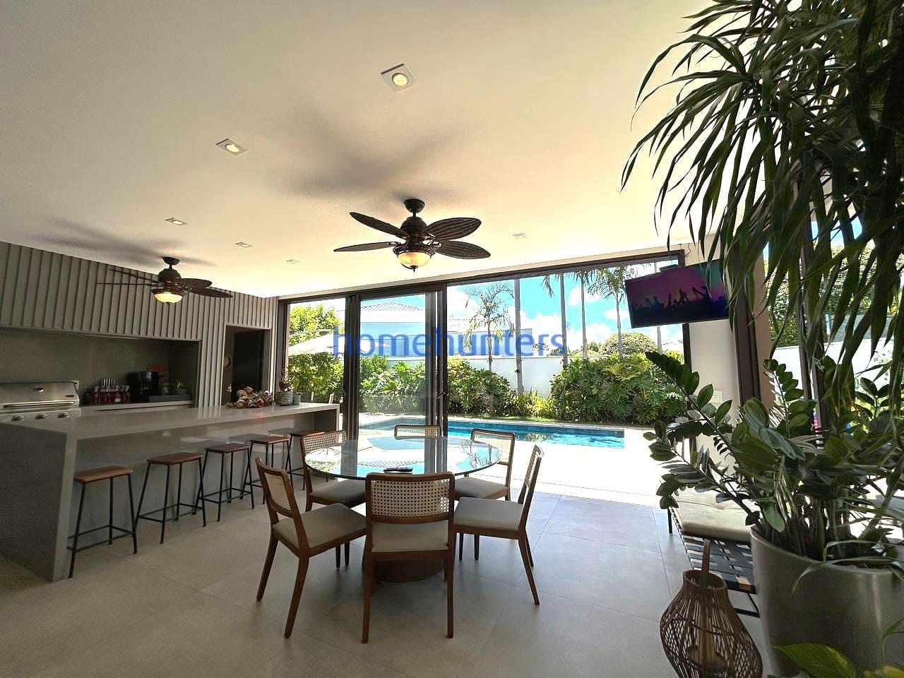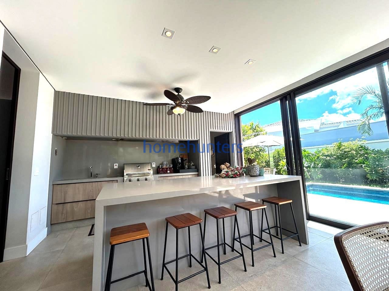 No piso inferior, uma quarta suíte extremamente versátil permite diferentes configurações, como home office, sala de cinema ou suíte de hóspedes. As salas de estar e jantar contam com acabamento sofisticado e ar-condicionado, criando um ambiente acolhedor e funcional. A cozinha gourmet com ilha é moderna e totalmente equipada com cooktop, geladeira, micro-ondas, forno elétrico, coifa e lava-louças, além de despensa, lavanderia e marcenaria planejada de alto padrão.