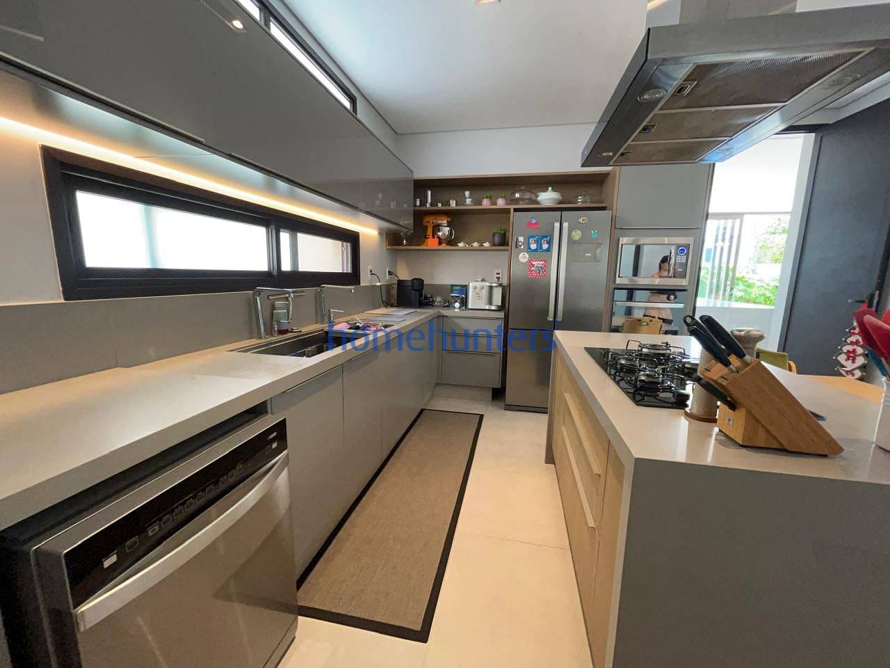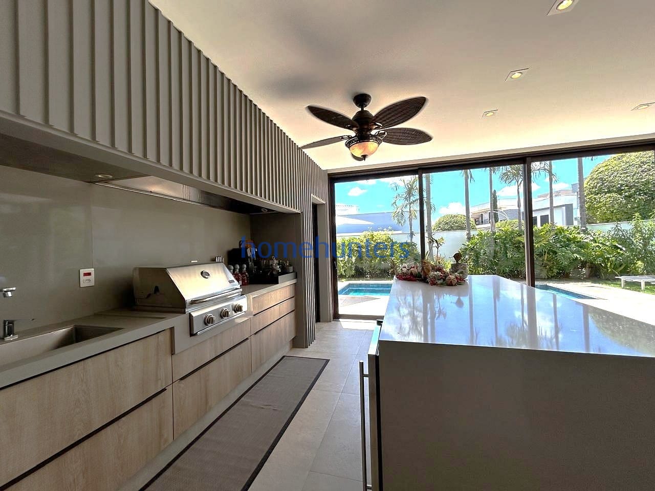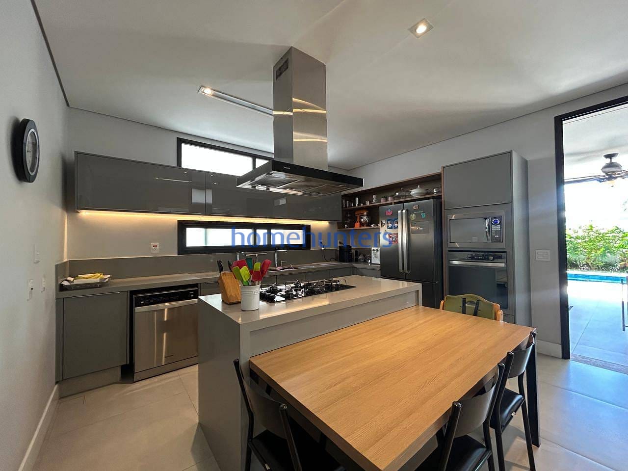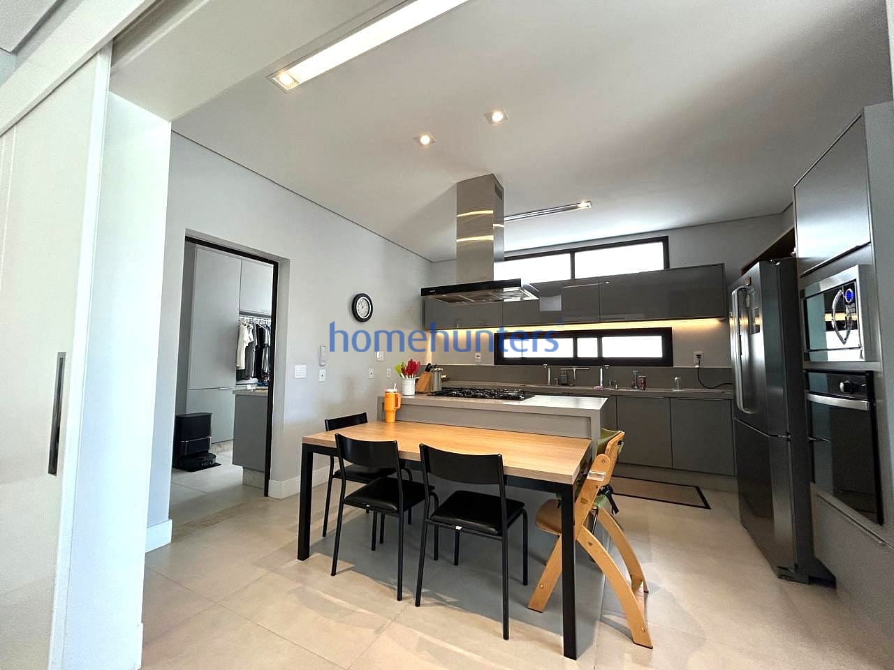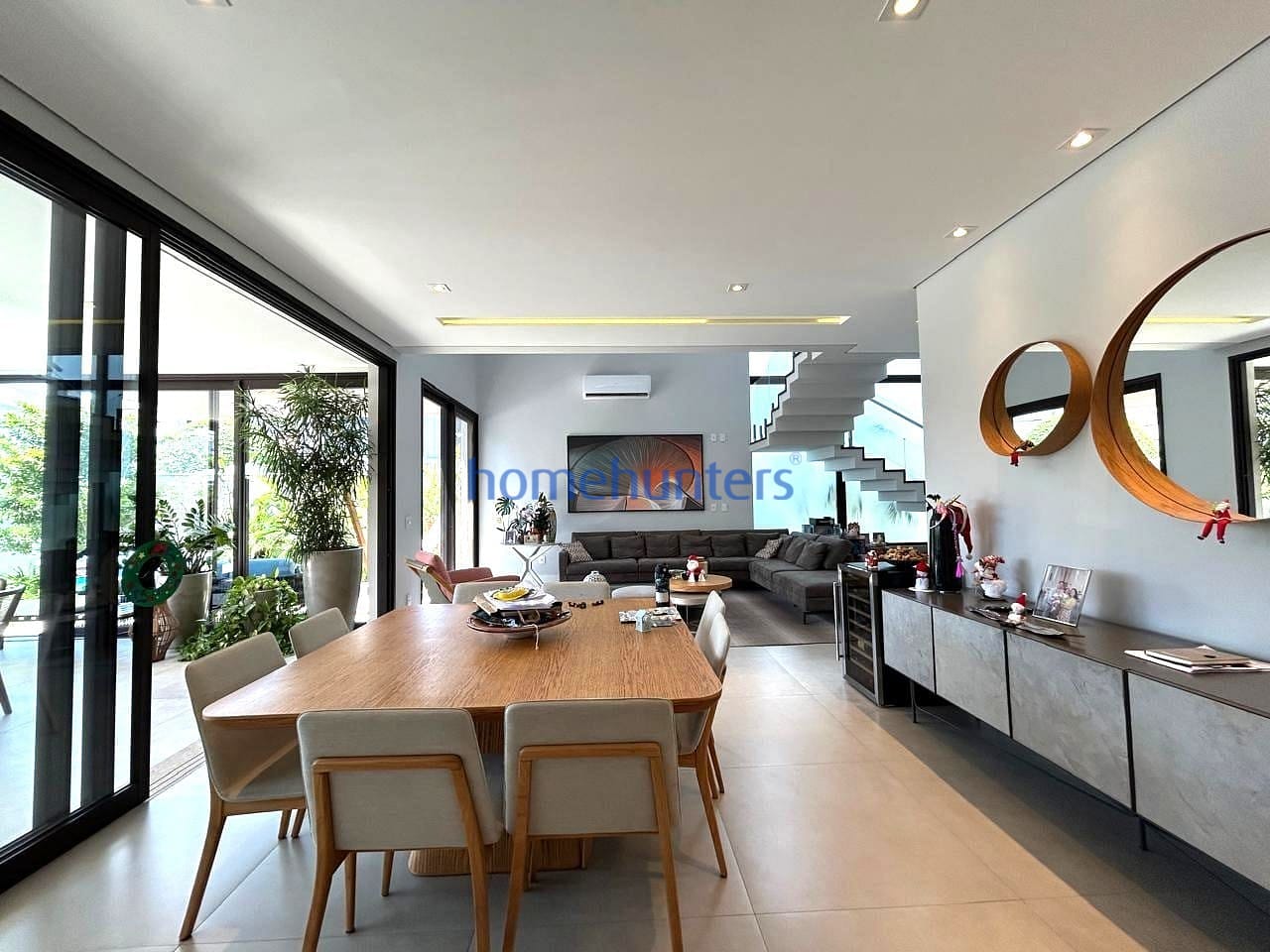 No piso inferior, uma quarta suíte extremamente versátil permite diferentes configurações, como home office, sala de cinema ou suíte de hóspedes. As salas de estar e jantar contam com acabamento sofisticado e ar-condicionado, criando um ambiente acolhedor e funcional. A cozinha gourmet com ilha é moderna e totalmente equipada com cooktop, geladeira, micro-ondas, forno elétrico, coifa e lava-louças, além de despensa, lavanderia e marcenaria planejada de alto padrão.
