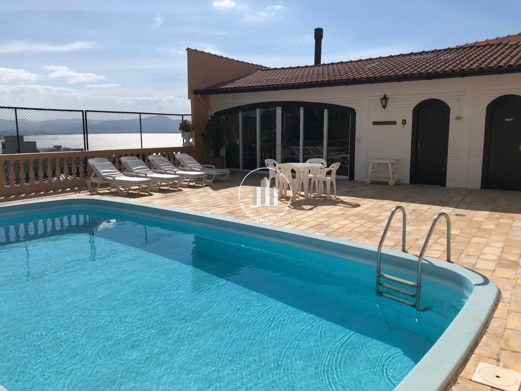 Casa semimobiliada com 600m² construídos, piscina e vista mar oferece: