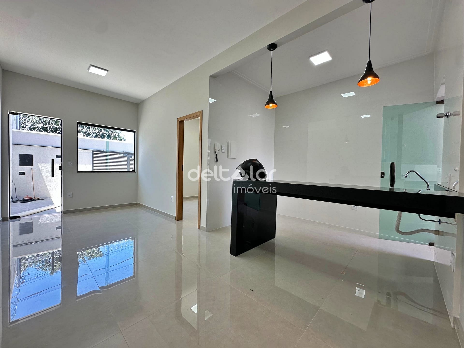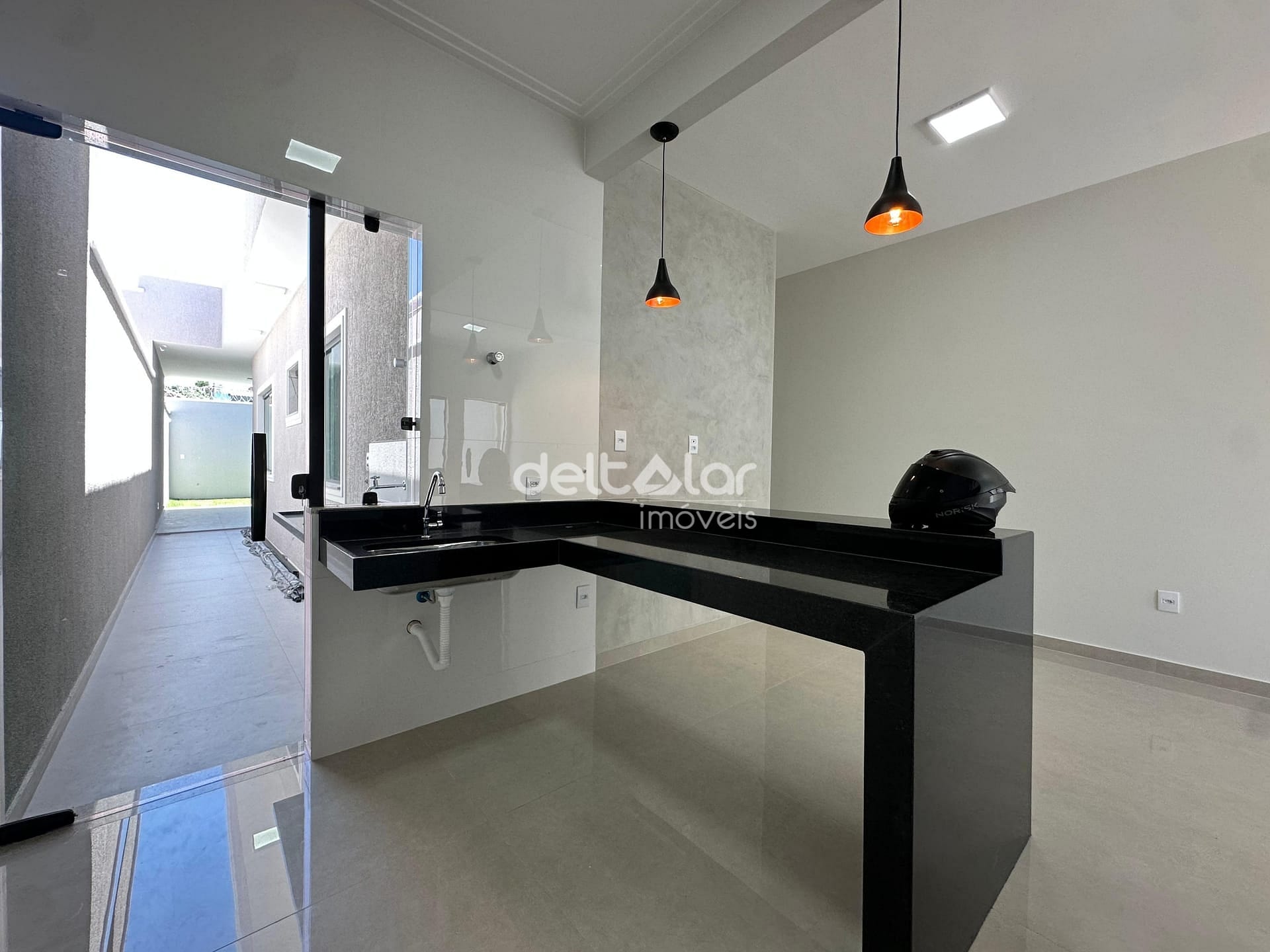 Esta casa foi pensada para oferecer conforto no dia a dia, começando pela sala para dois ambientes, que torna o convívio mais agradável e acolhedor. Os três quartos, sendo uma suíte, trazem privacidade e praticidade, com acabamentos modernos como bancadas esculpidas e nichos nos banheiros. A cozinha americana com bancadas em granito integra a rotina sem perder funcionalidade, enquanto a lavanderia separada mantém tudo organizado.