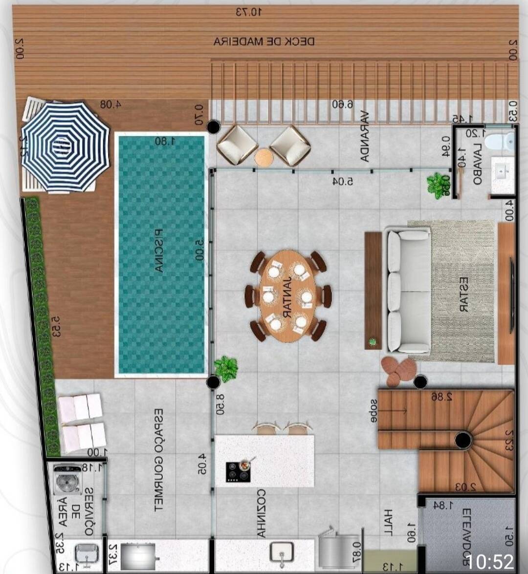 - Piscina para momentos relaxantes e refrescantes com deck e área gourmet.