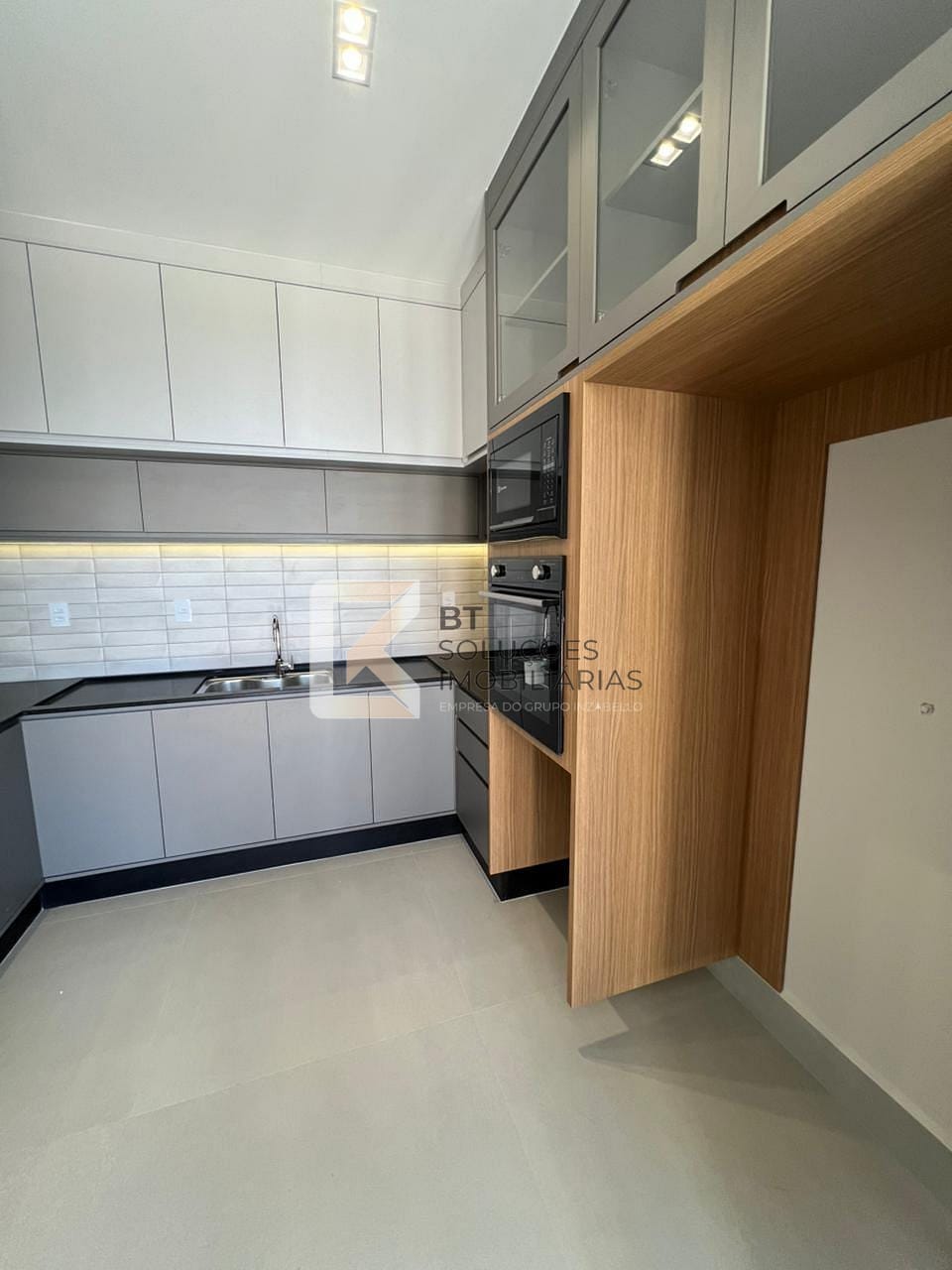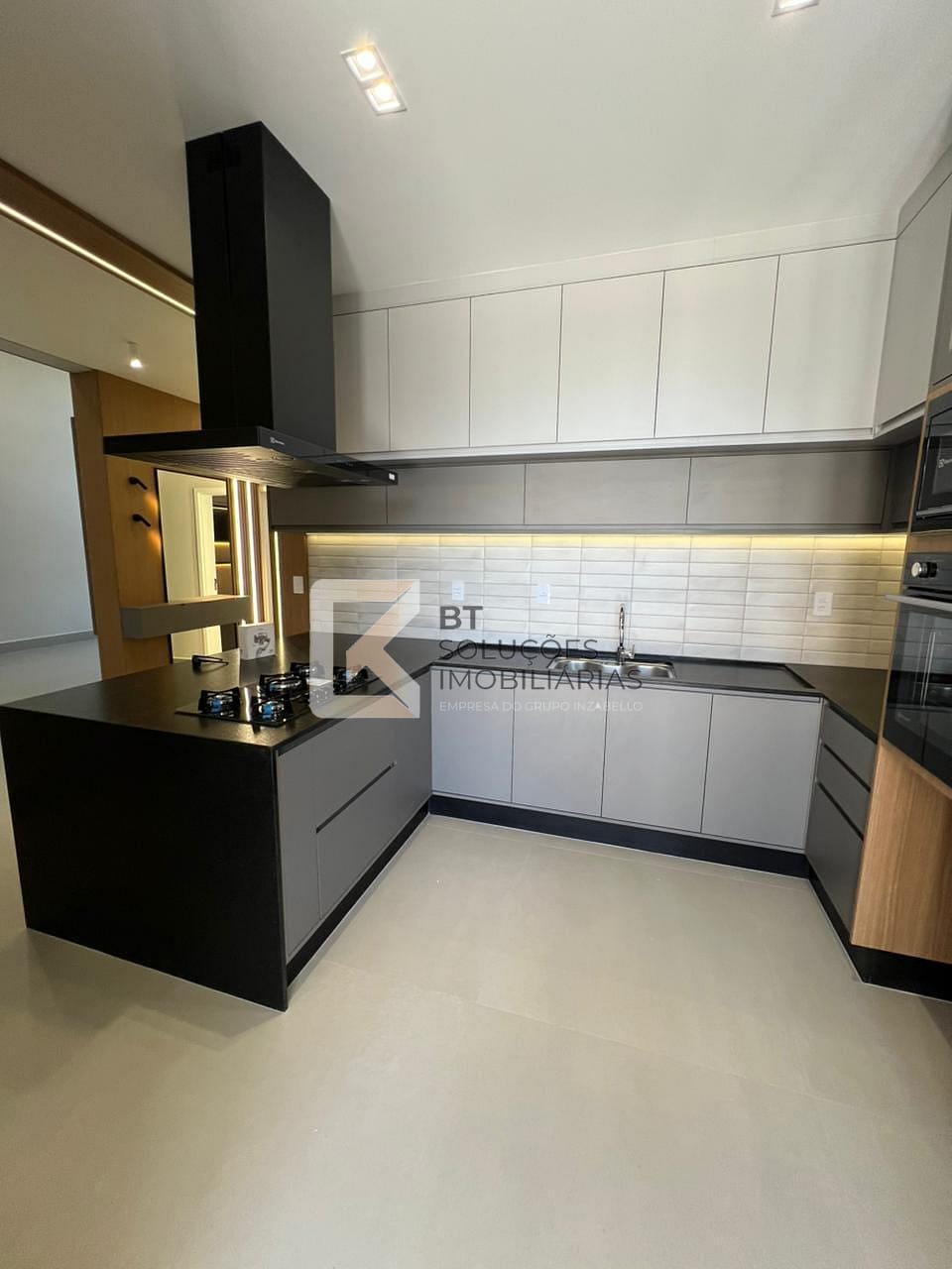 - Cozinha com cooktop, forno, micro-ondas e coifa