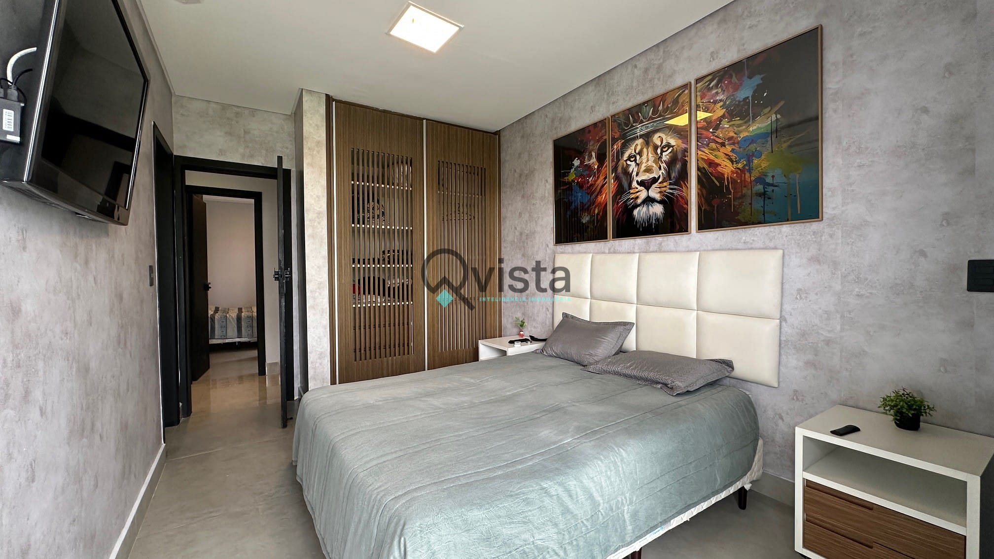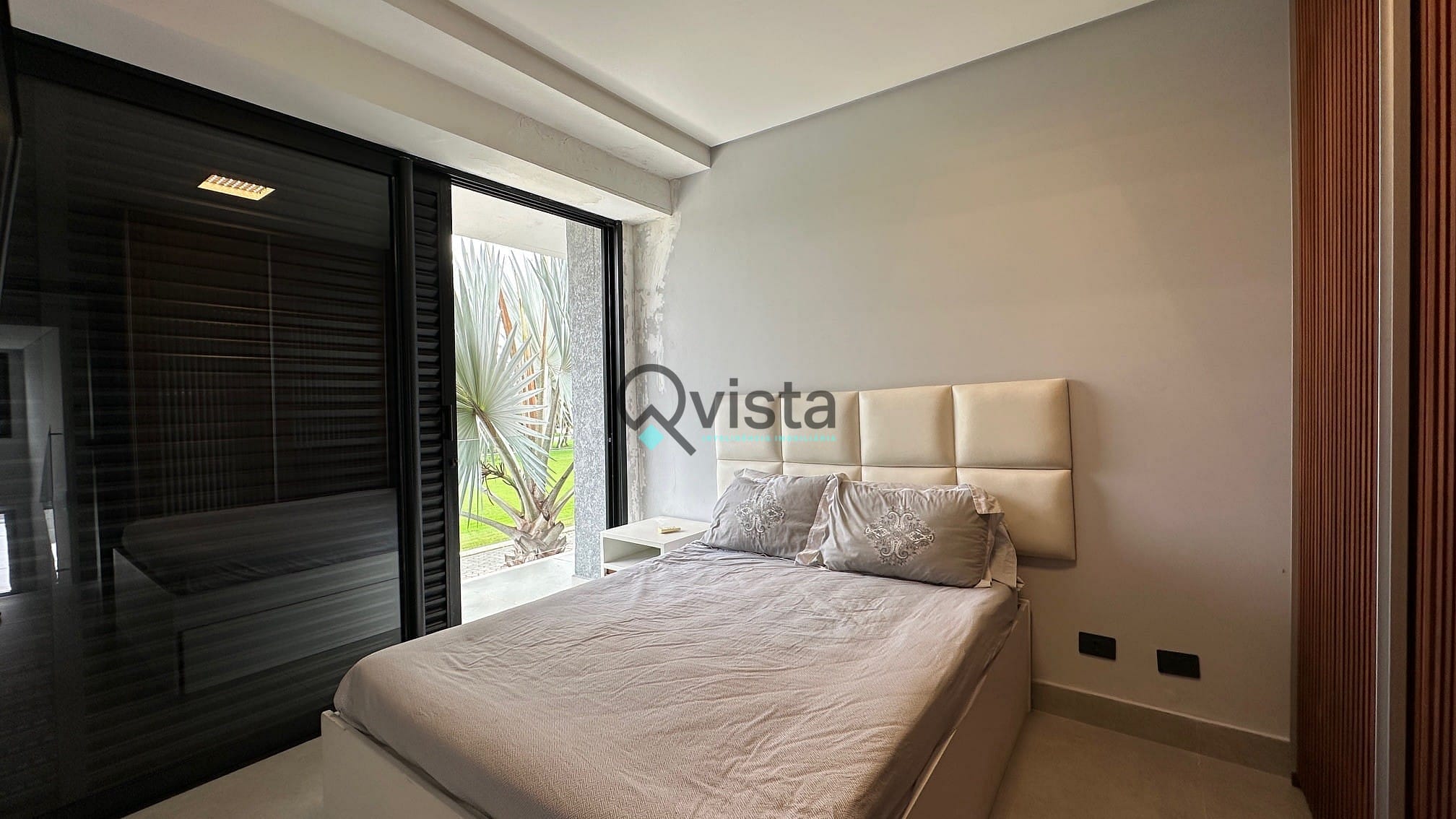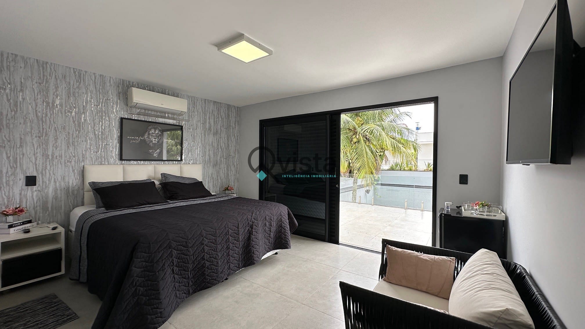 Suíte master com terraço de frente para o lazer da casa;