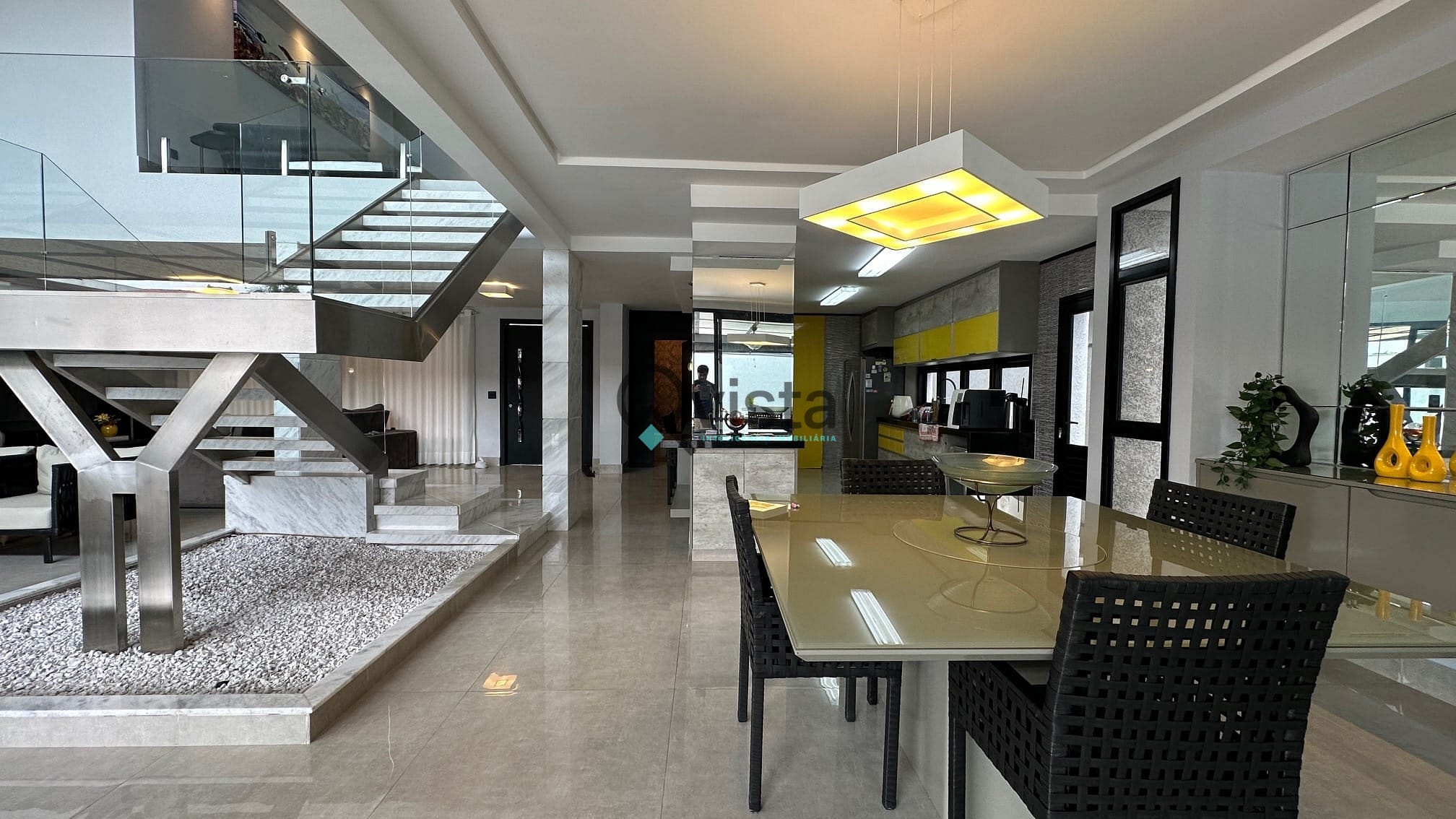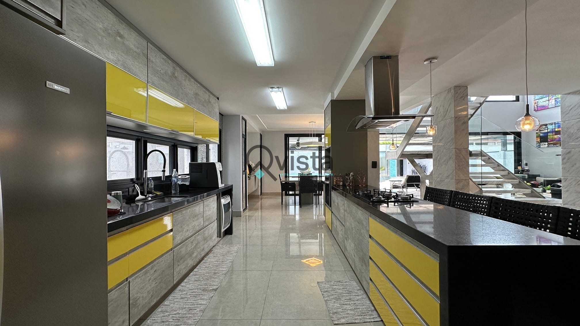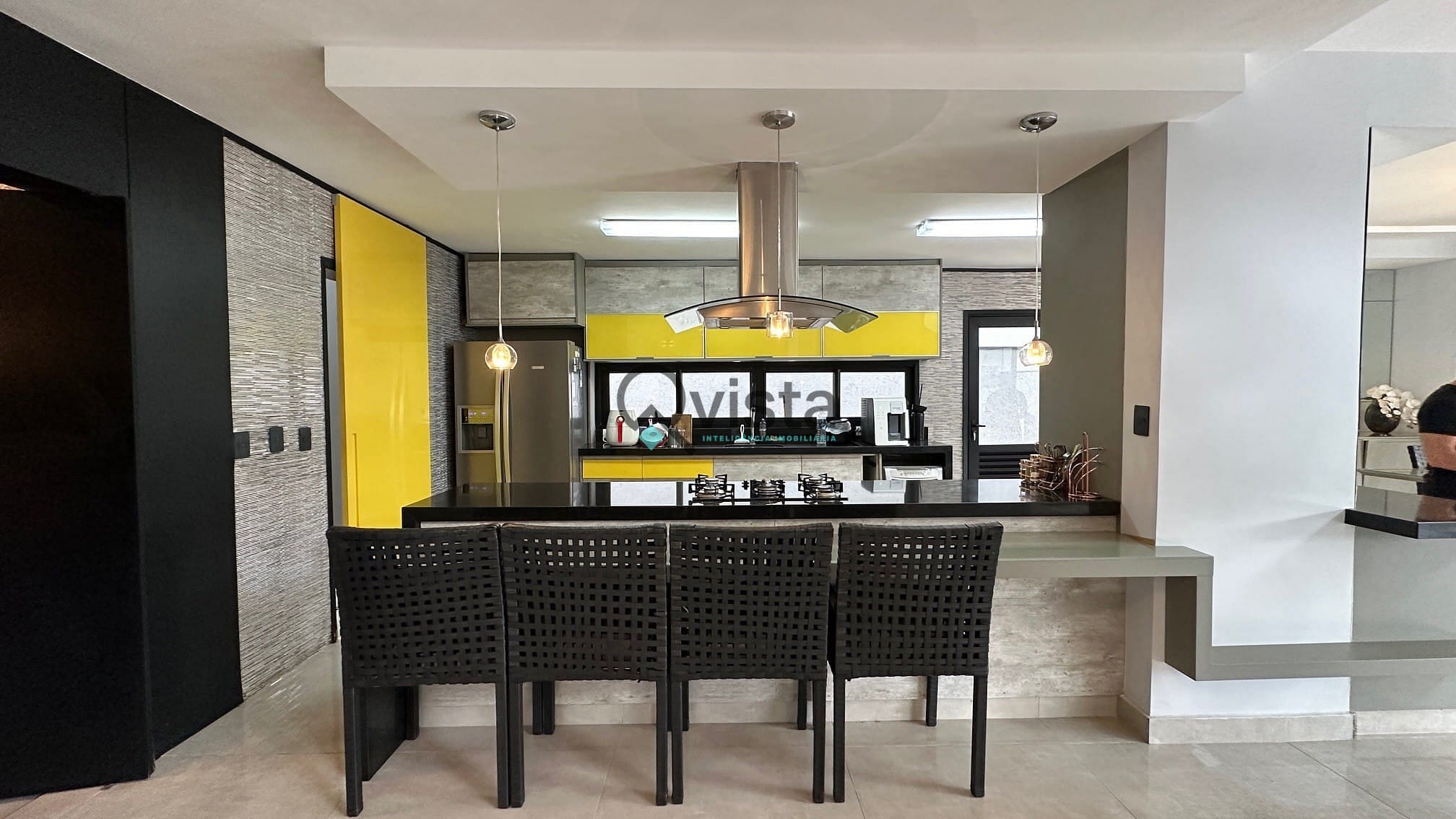 Cozinha aberta com móveis planejados;
