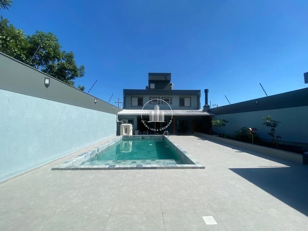 Casa de 210m² privativos e 350m² de área total, localizada no Balneário Estreito em Florianópolis. Distribuída em dois pavimentos, oferece no térreo sala de estar, sala de jantar, cozinha equipada, despensa, lavanderia e lavabo. No pavimento superior, conta com 4 dormitórios, sendo 1 suíte, banheiro social e jardim de inverno.