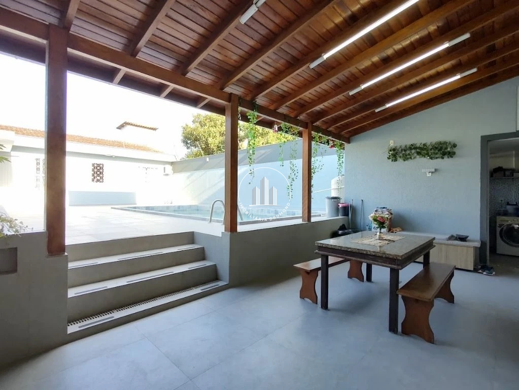 Imóvel recentemente reformado em janeiro de 2024, apresenta acabamento em porcelanato Portobello e está 100% mobiliado com móveis planejados. Dispõe de área gourmet com churrasqueira, piscina, horta e amplo quintal. A propriedade inclui ainda uma edícula composta por suíte, sala e escritório, ideal para múltiplos usos.