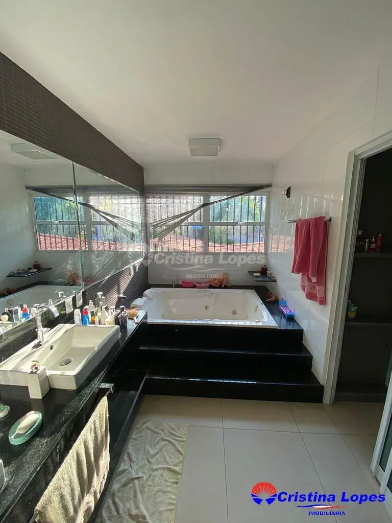 Casa com 04 suítes 04 garagens cobertas Área de Serviço Copa Escritório Lavabo Piscina Piso Porcelanato Sala 02 Ambientes Churrasqueira.