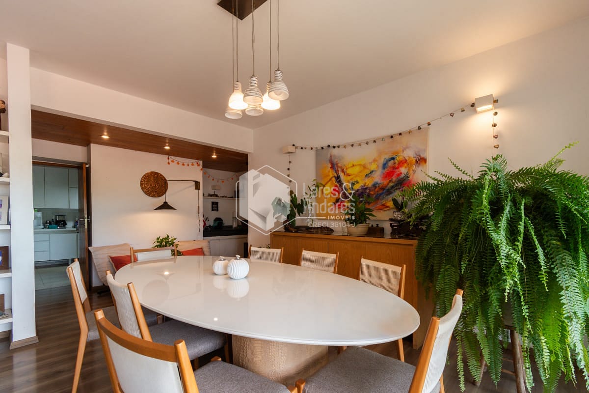 O imóvel conta com área de serviço, banheiro de serviço, despensa, churrasqueira, piscina e jardim, proporcionando praticidade e momentos de convivência agradáveis. Está mobiliado e equipado com ar-condicionado na suíte principal, gás encanado e sistema de água quente.