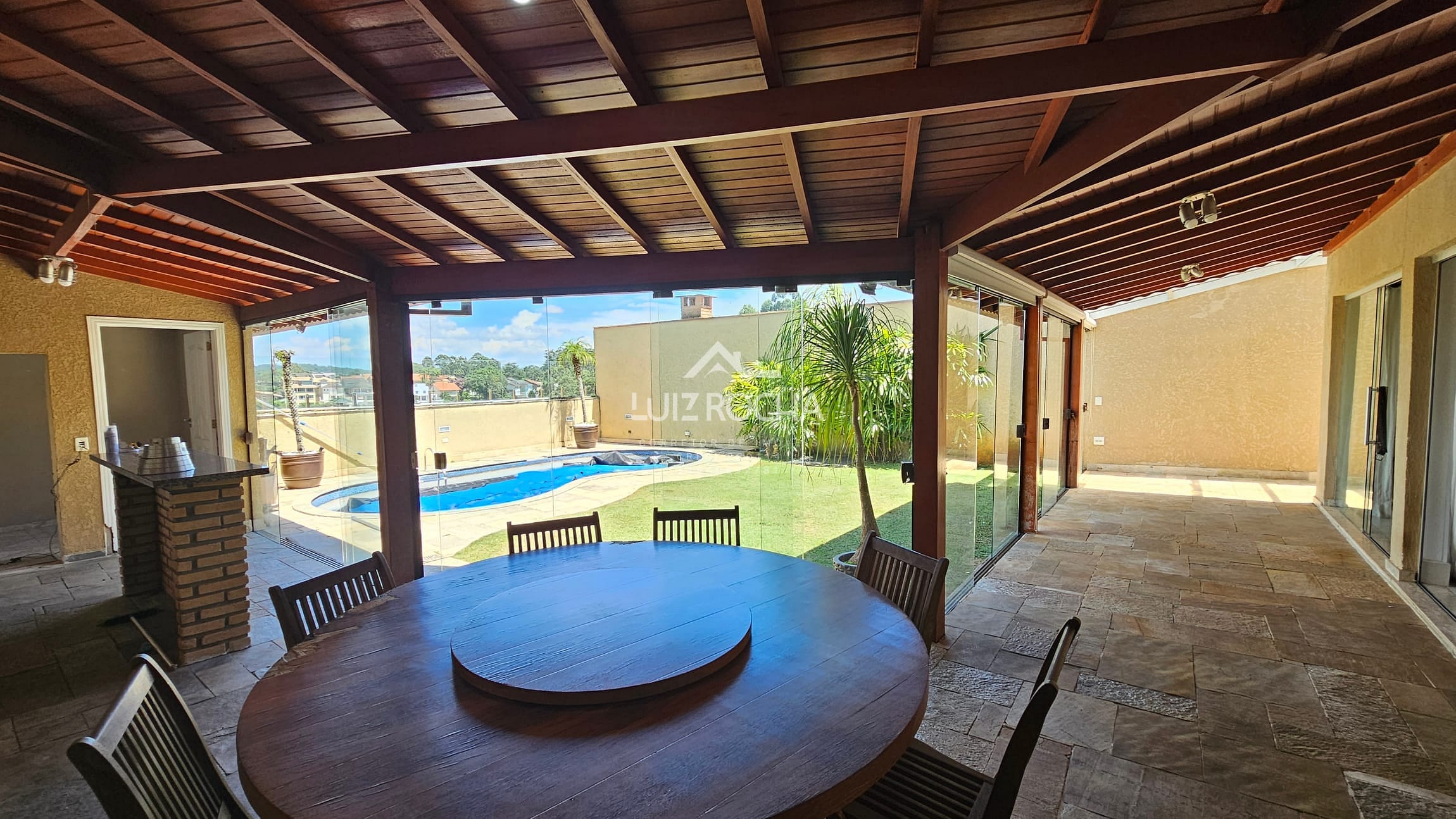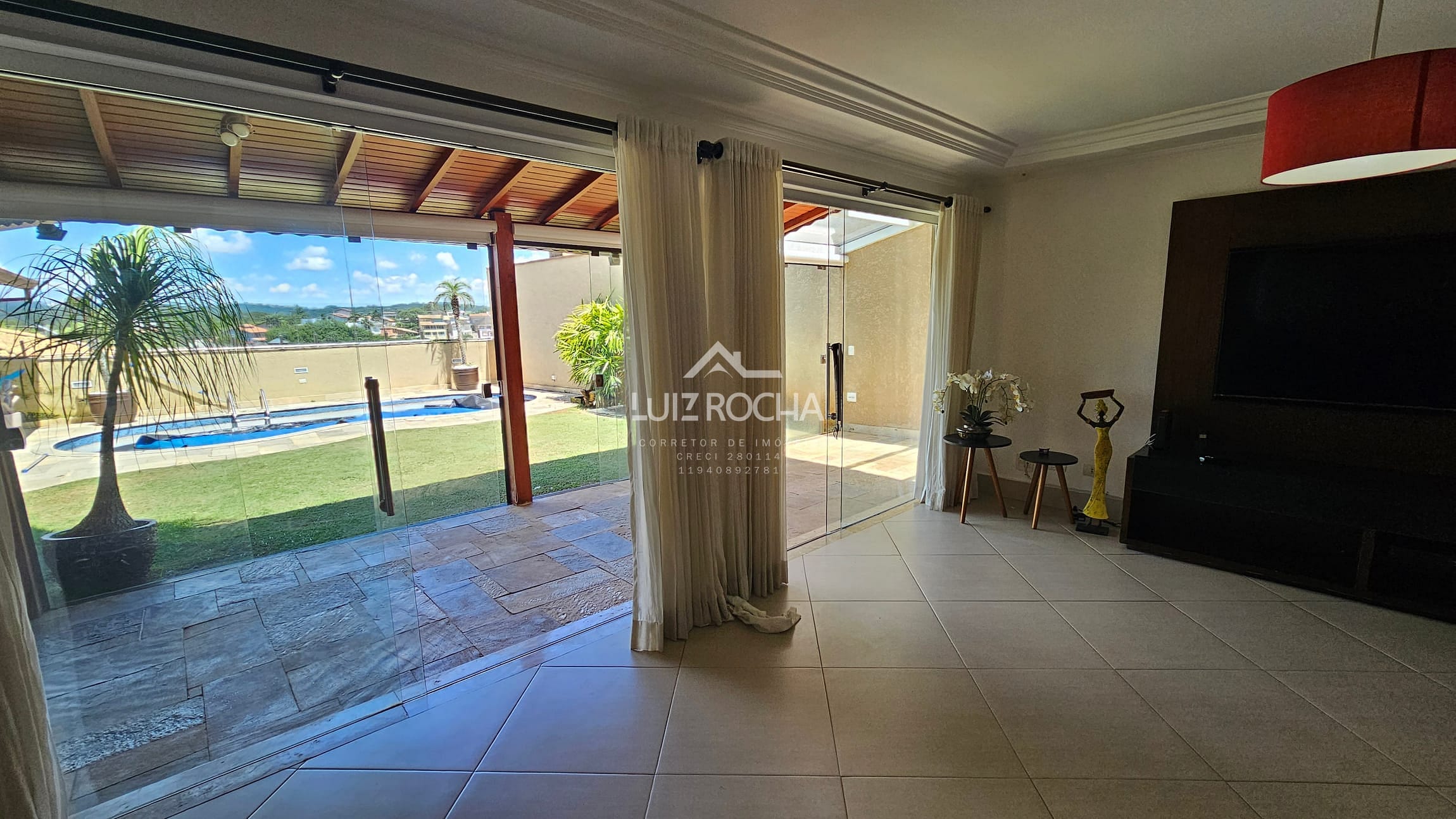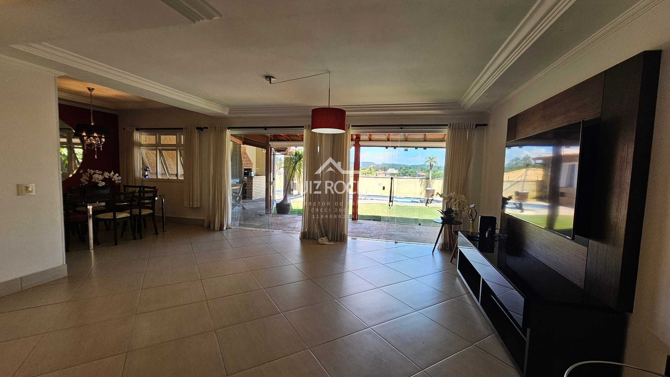 A cozinha possui armários planejados, garantindo praticidade e organização, além de contar com um lavabo que atende perfeitamente à área social. Na área externa, o quintal é espaçoso e abriga uma bela piscina, perfeita para momentos de lazer e relaxamento.
