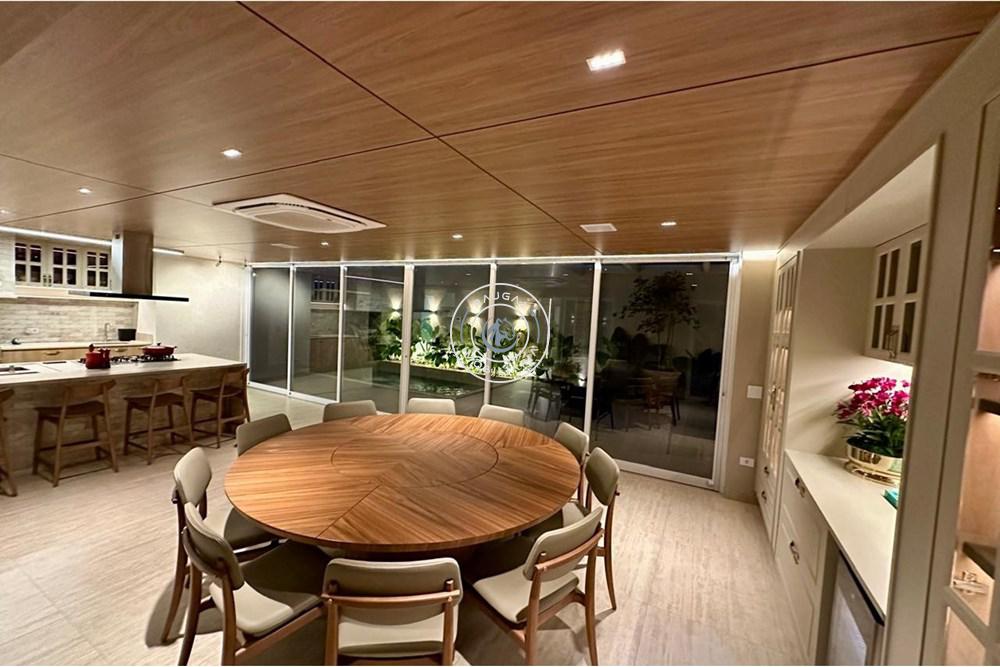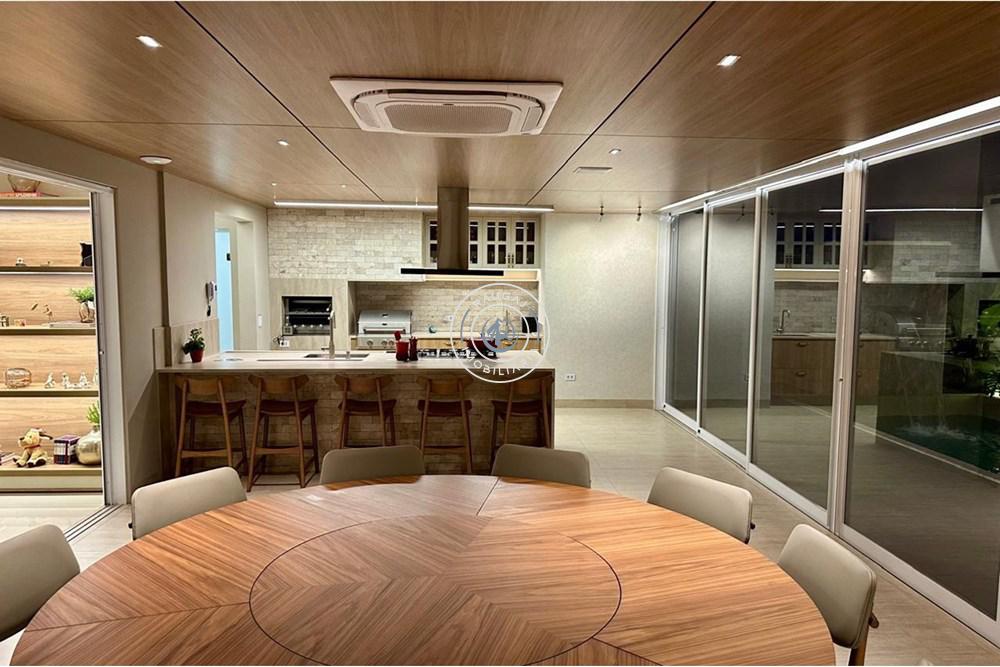 Aqui temos uma área gourmet fantástica, com churrasqueira e + 1 churrasqueira a gás armários planejados da @celmarmoveiscg , ar k7 , piscina aquecida, se o calor ainda te incomodar as salas de estar e jantar com pé direito duplo são climatizadas, se bater o cansaço a área intima fica isolada para que você possa descansar sem barulho ou perturbação, as suítes são todas climatizadas e contam com persianas motorizadas que podem facilmente fazer o dia tornar-se noite.