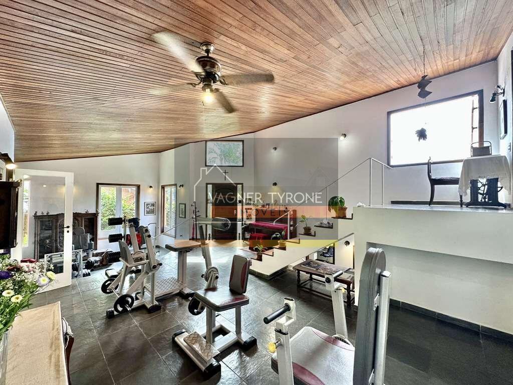 Conta ainda com isolamento térmico entre o telhado e o forro, sendo o forro em madeira de Ipê em toda a área social e íntima.