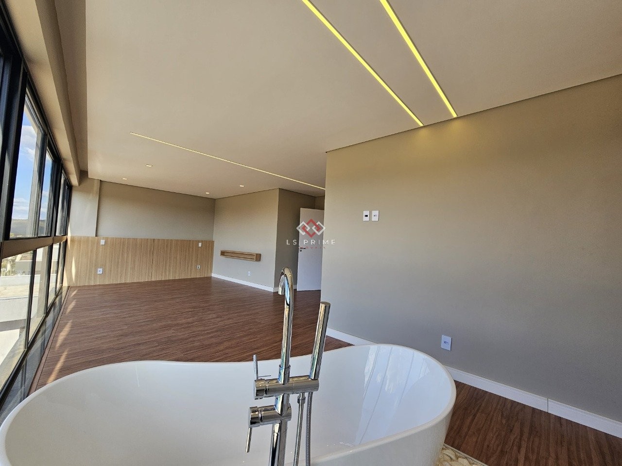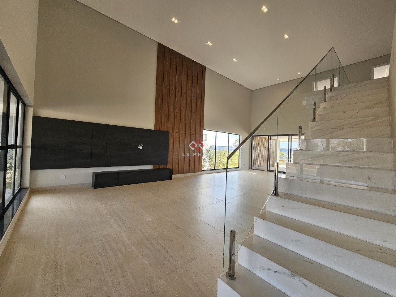 - Sala ampla com pé direito alto e painel;