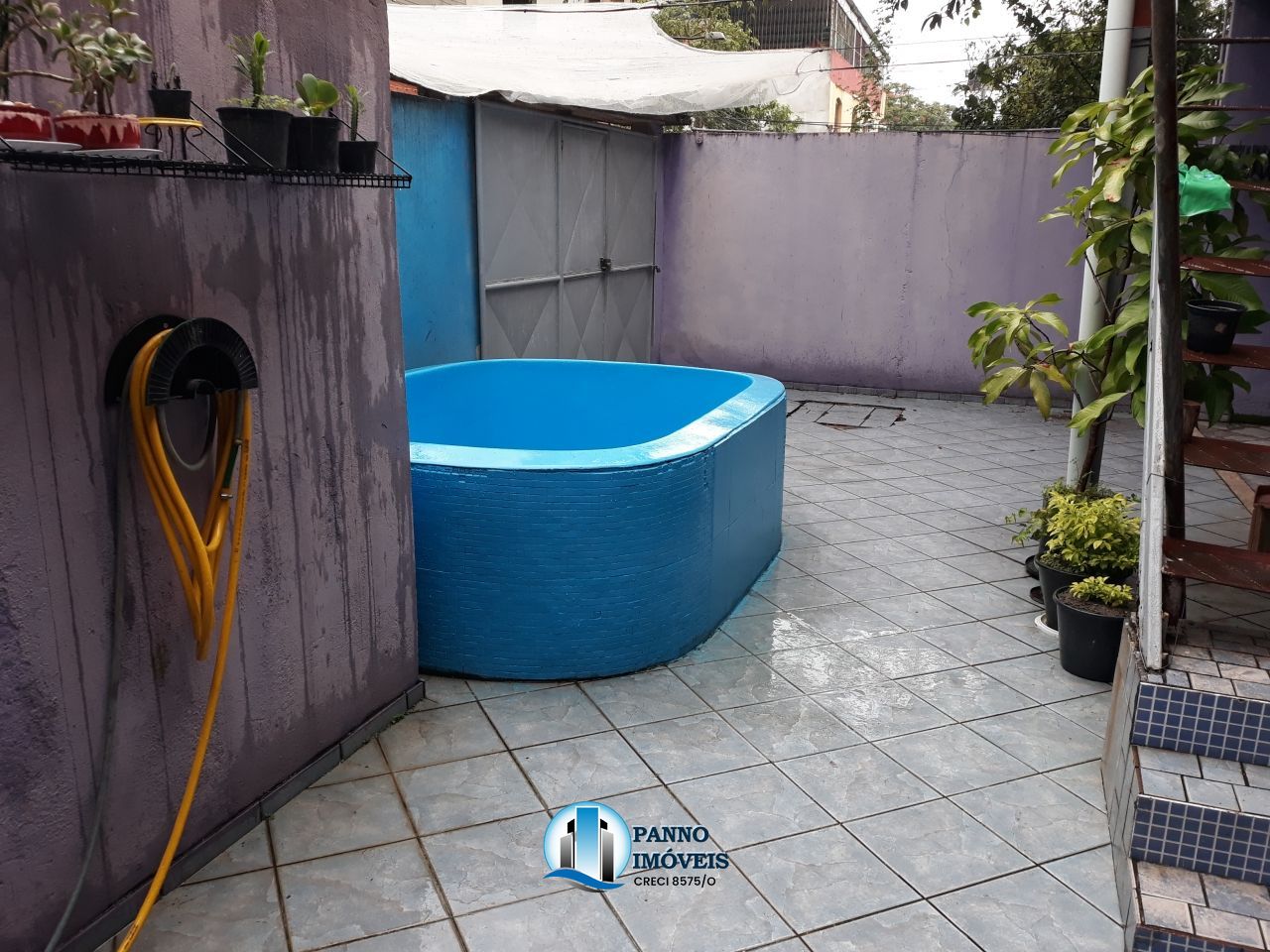 Térreo casa de 3 quartos com suíte, garagem para 3 carros, cozinha com copa, banheiro e área de serviço e quintal com piscina