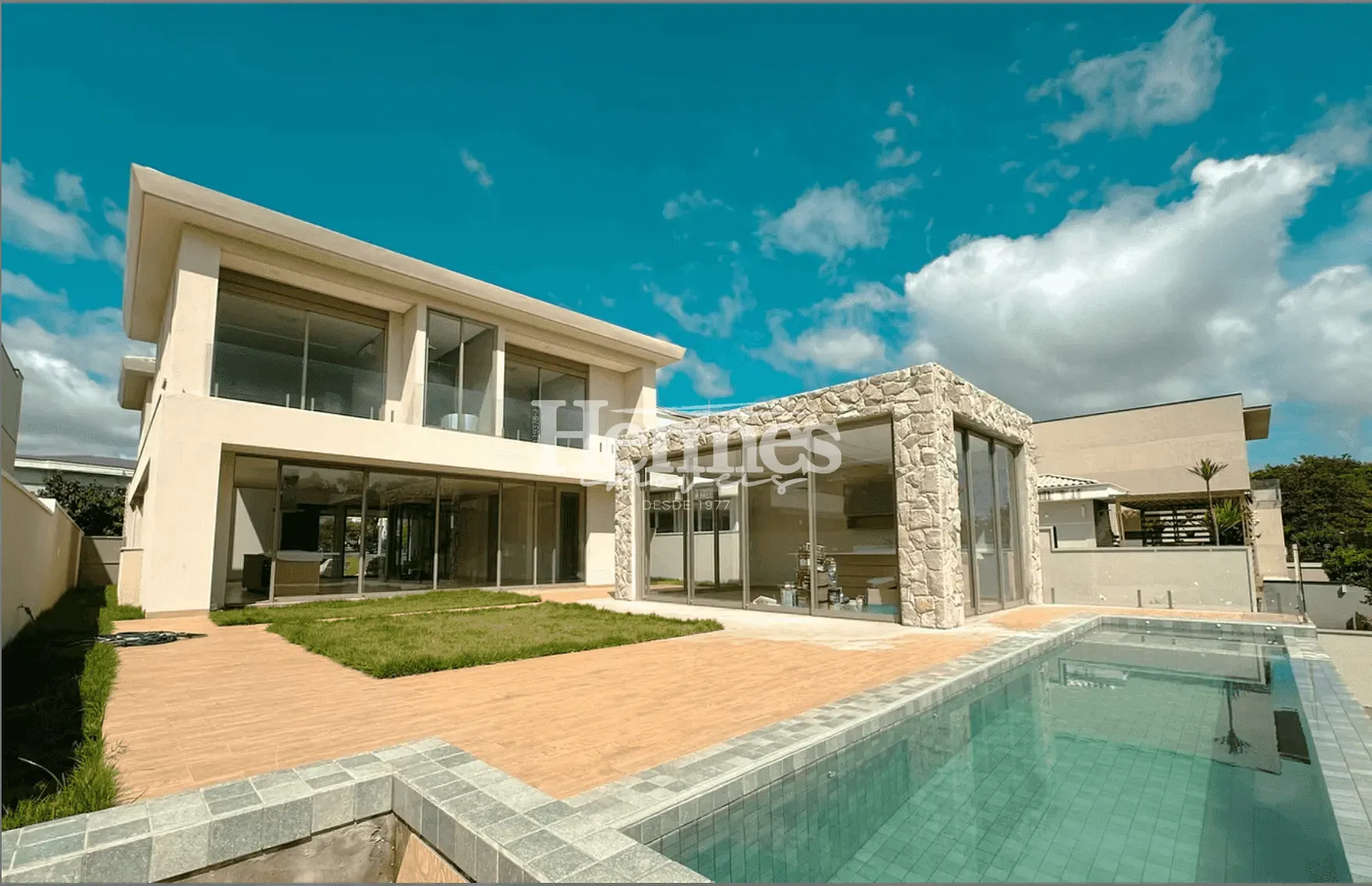 A área externa é um verdadeiro convite ao lazer, com piscina de alvenaria revestida em pastilhas e um espaço gourmet completo, já equipado com fogão, cooktop, micro-ondas e forno elétrico, além de marcenaria planejada que agrega sofisticação e funcionalidade.