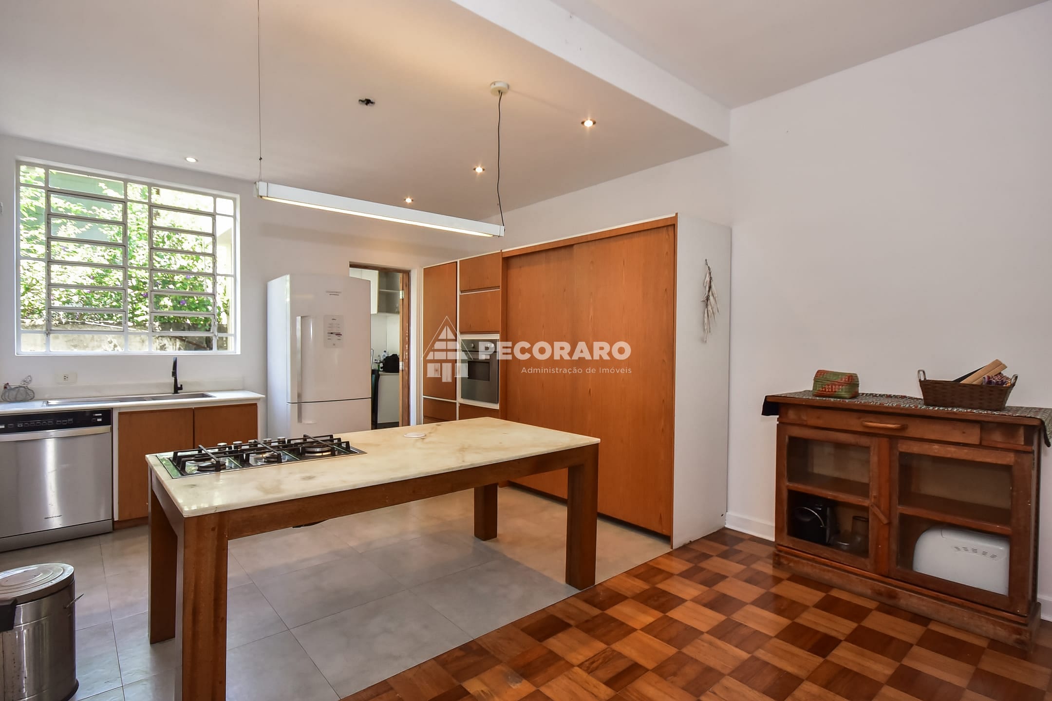 Armários embutidos em toda a cozinha e lavanderia, proporcionando organização e espaço extra.