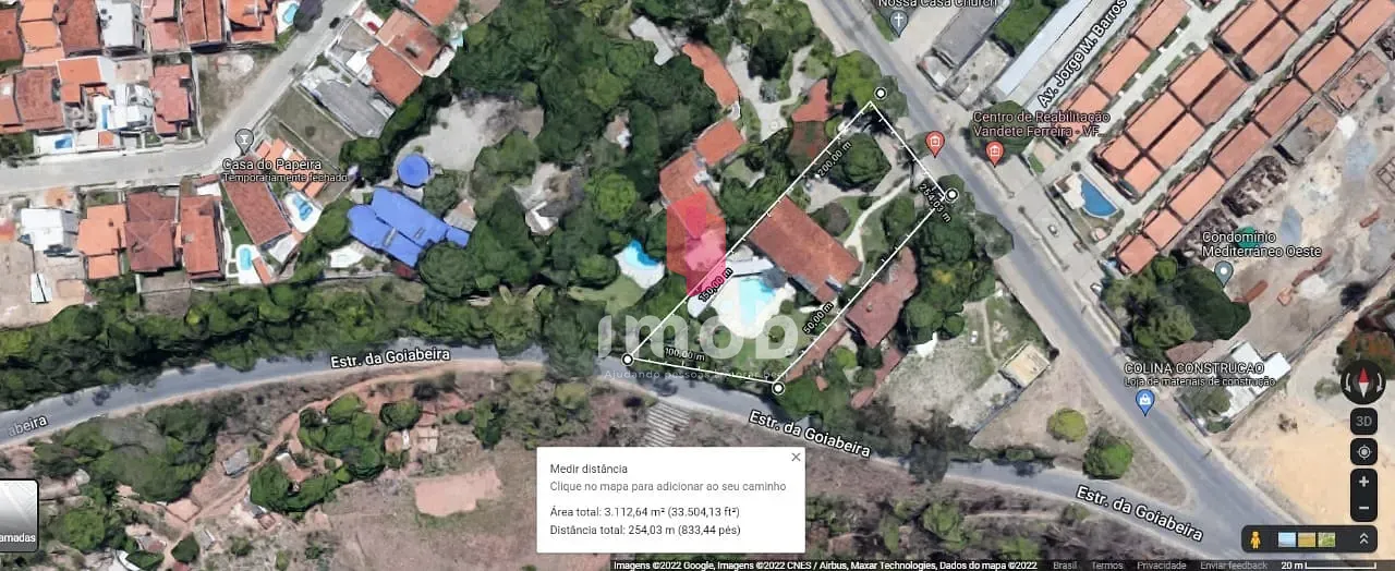 Terreno medindo 35m de frente, do lado direito casa medindo 72m e do lado esquerdo da casa medindo 92m aproximadamente, perfazendo um total de cerca de 3.000m²