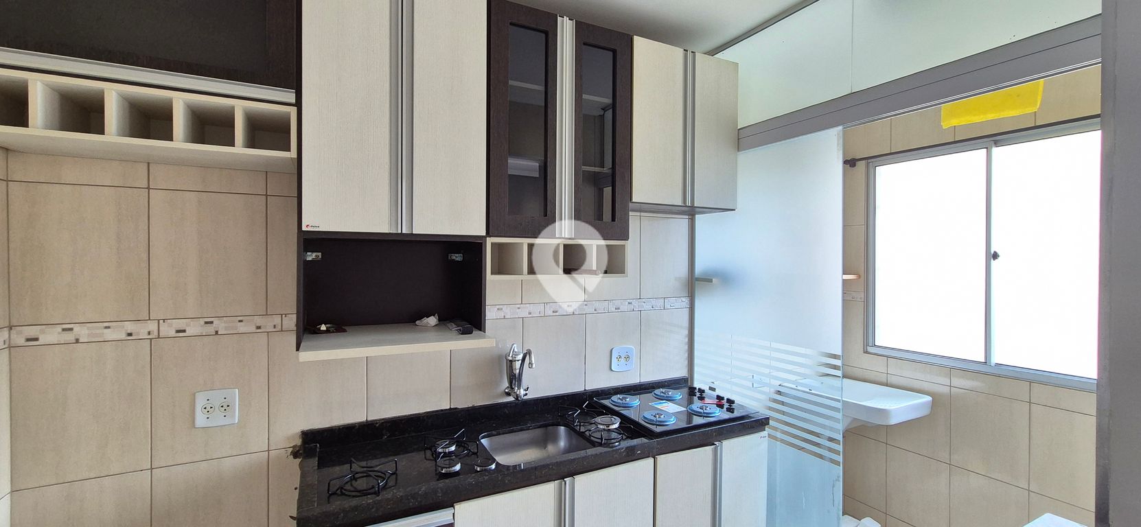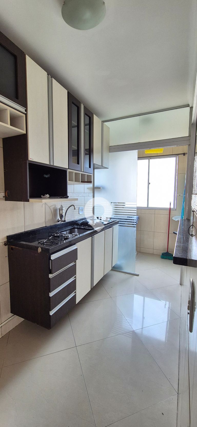 Cozinha com armários planejados, junto a lavanderia com ótimo espaço