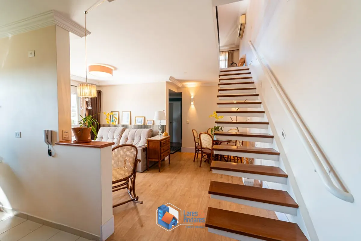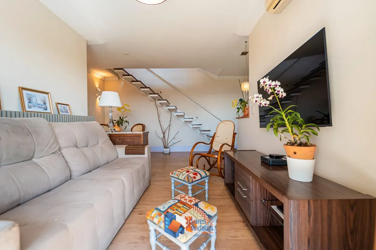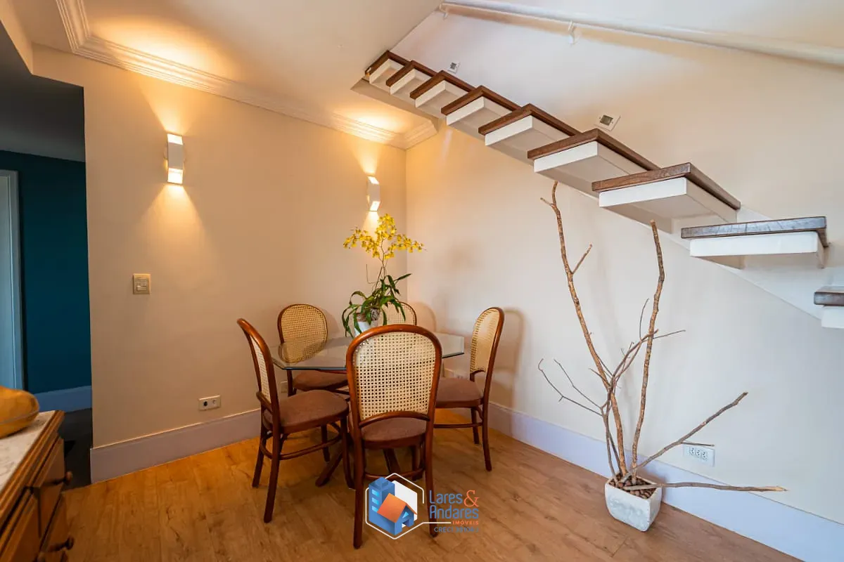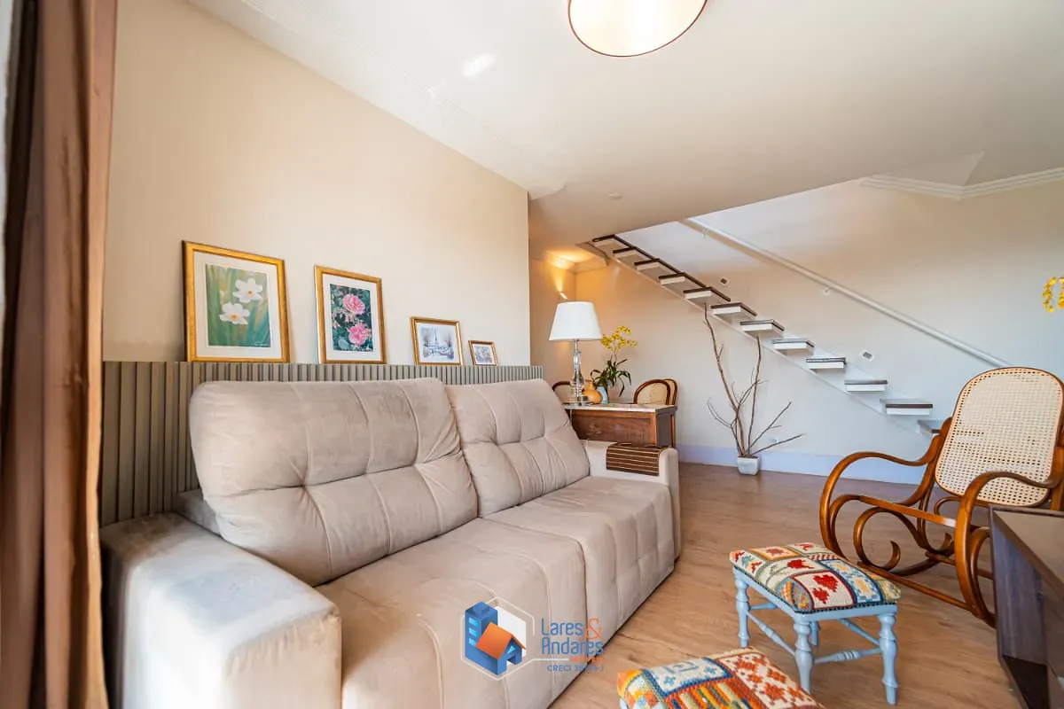 Com um total de 142 metros quadrados de área construída, a cobertura oferece uma suíte e um dormitório, com armários, um banheiro bem equipado, cozinha e área de serviço, além de uma generosa sala de estar com ar condicionado, perfeita para receber amigos e familiares. No pavimento superior, ainda conta com mais uma suíte, também com armários e banheira de hidromassagem, sala e uma área externa semicoberta, com churrasqueira. Um outro diferencial á o aquecimento solar, promovendo sustentabilidade e economia. E ainda conta com a comodidade de um depósito privativo.