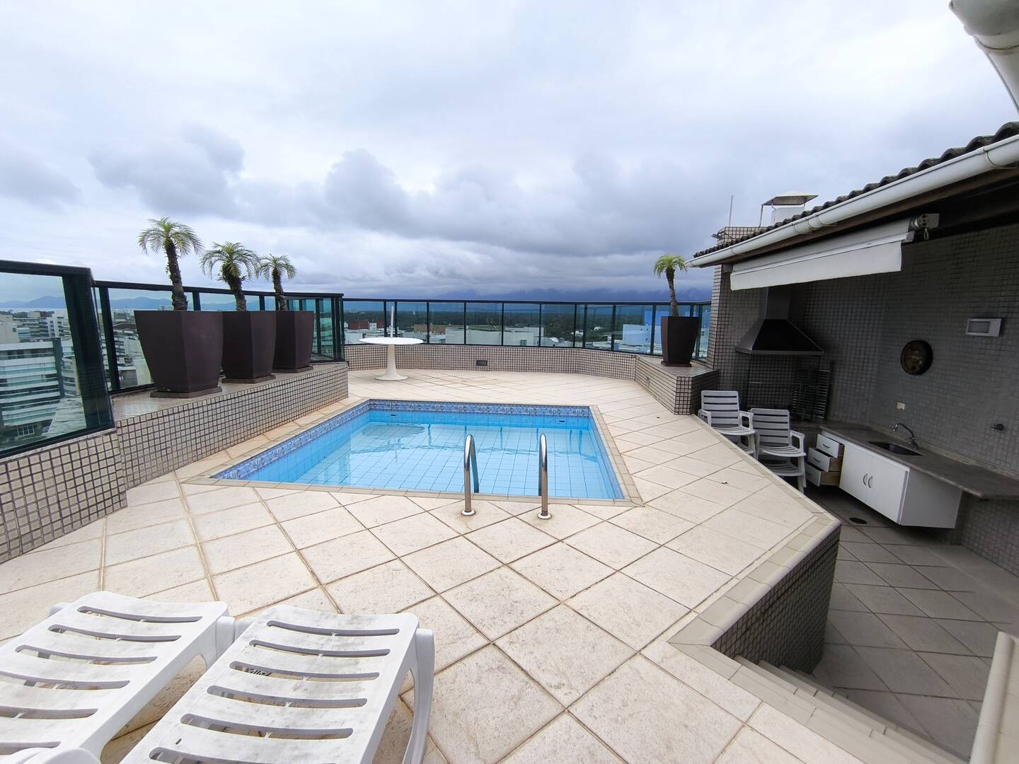 Espaço gourmet com churrasqueira, piscina privativa e uma bela vista para o mar, tudo muito caprichado para o seu descanso e lazer.