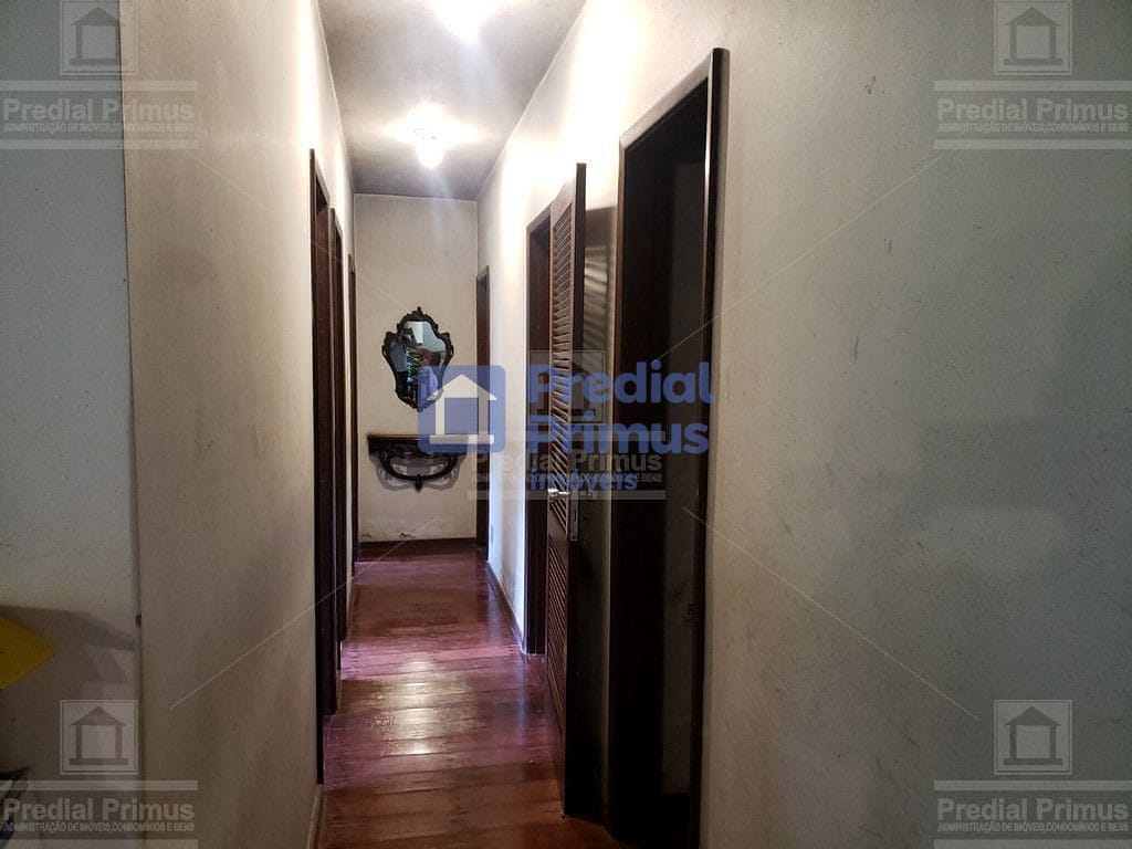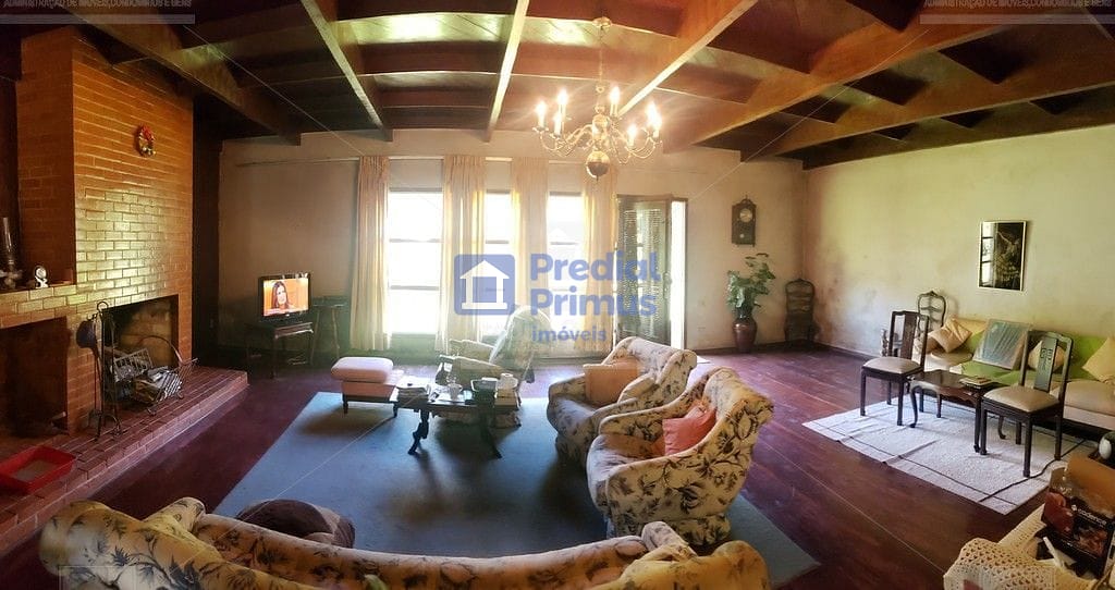 Térreo: 4 quartos (1 suíte com closet e banheira), ampla sala com lareira, sala de jantar, cozinha com despensa, banheiro social, dependência completa, lavanderia e escada em madeira de lei.