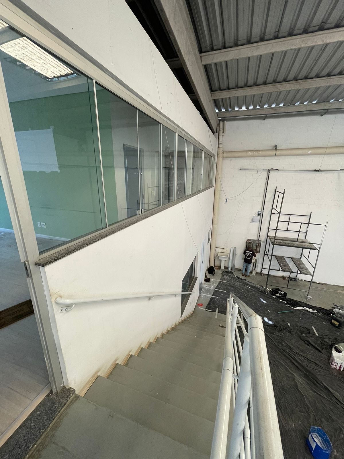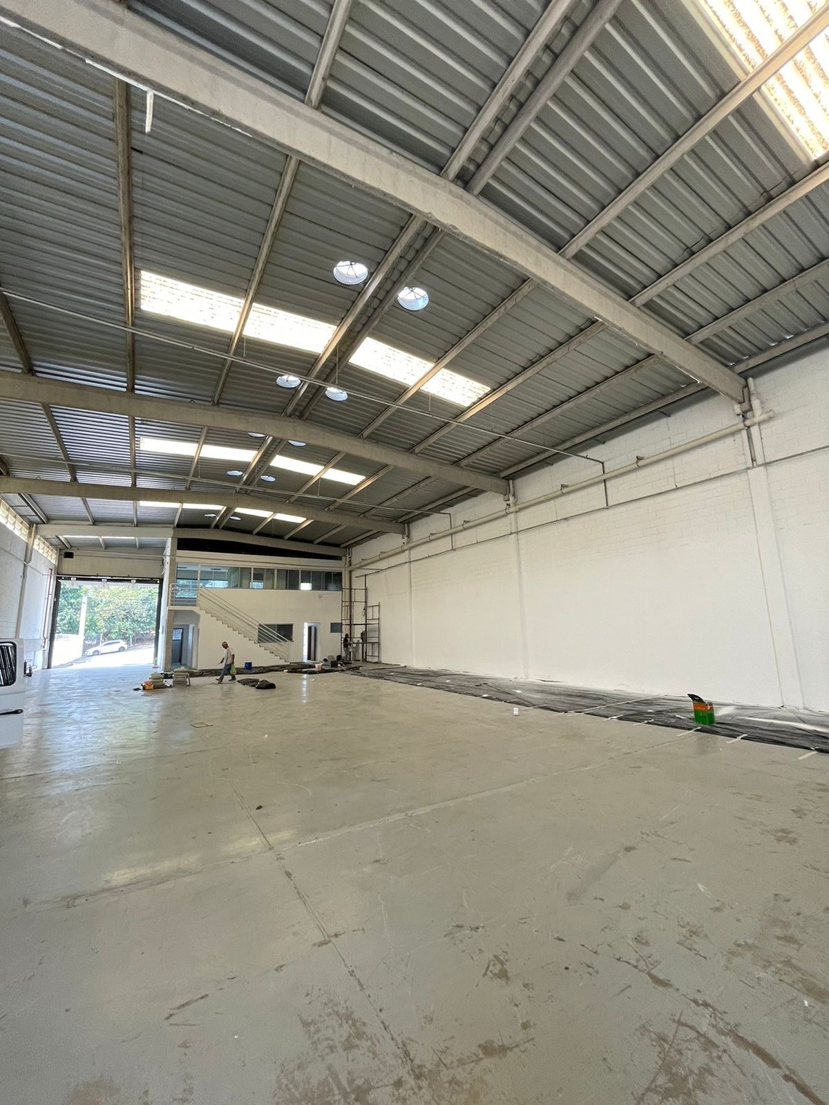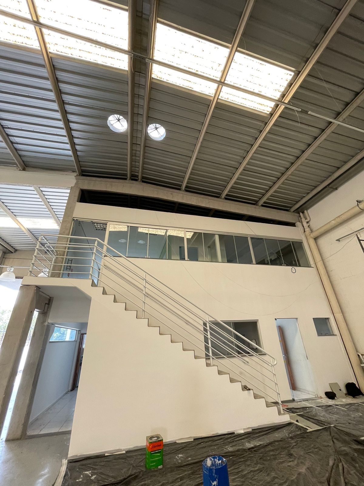 Equipado com vestiários, 2 andares de mezanino, salas de reuniões, cozinha, hall de entrada, estacionamento para pelo menos 10 carros