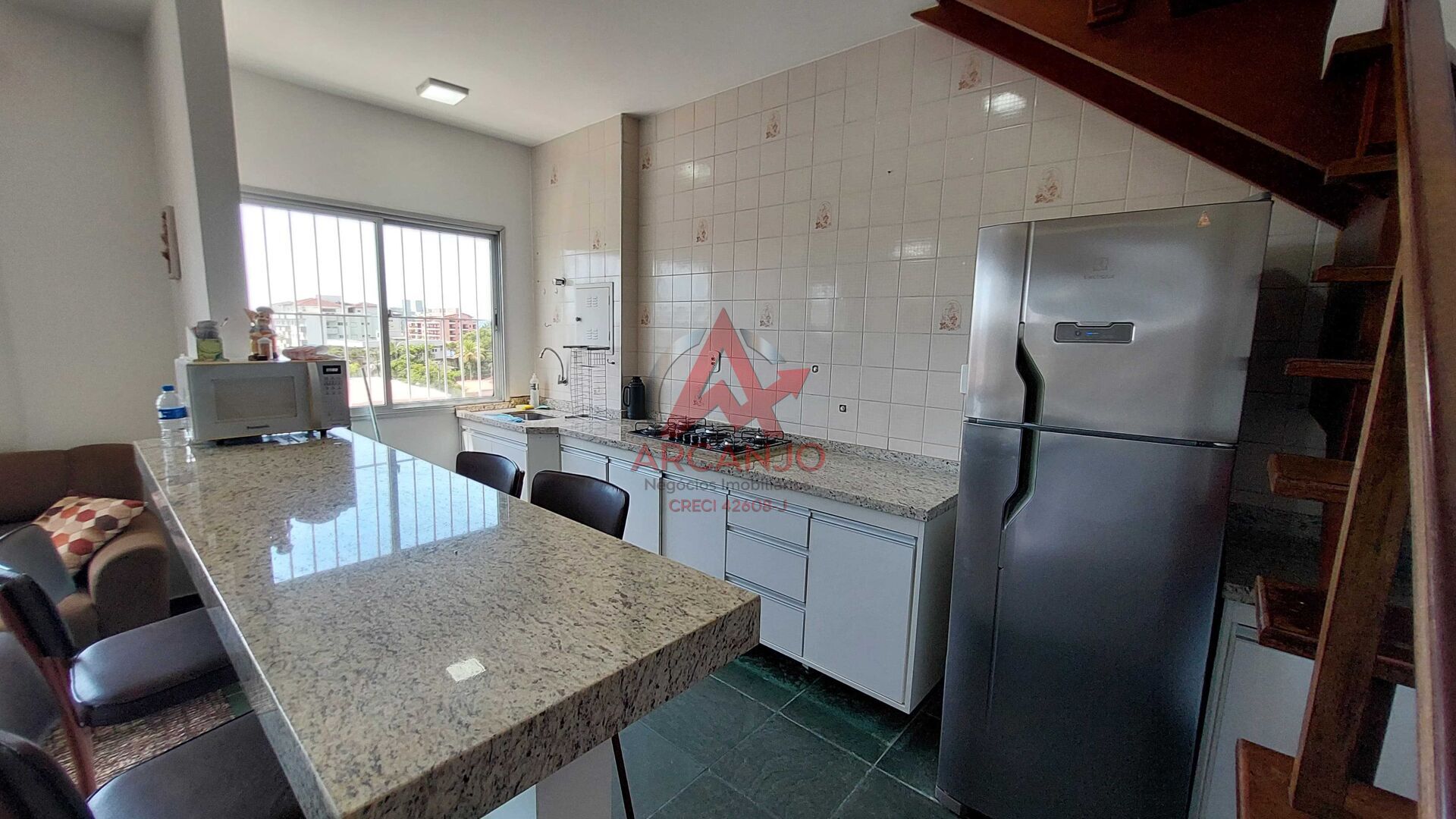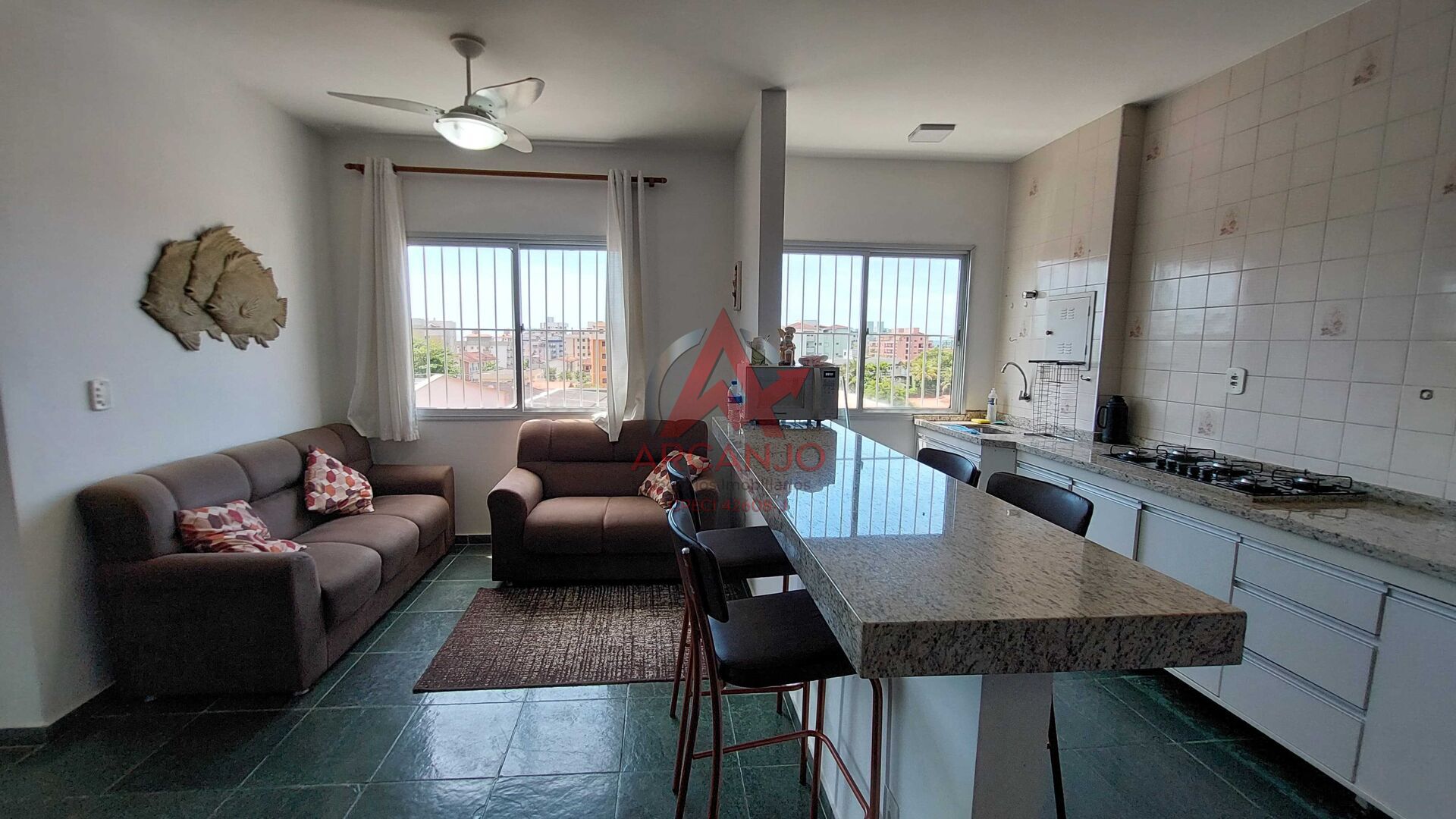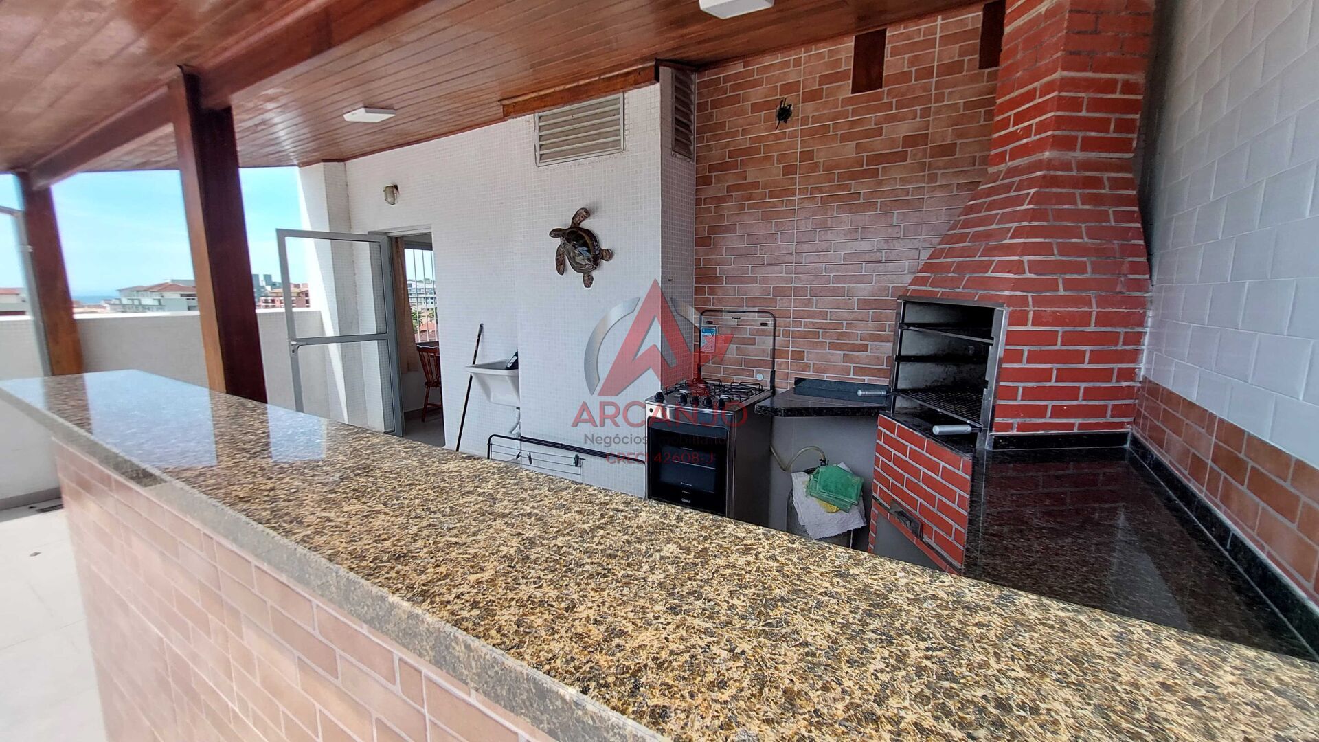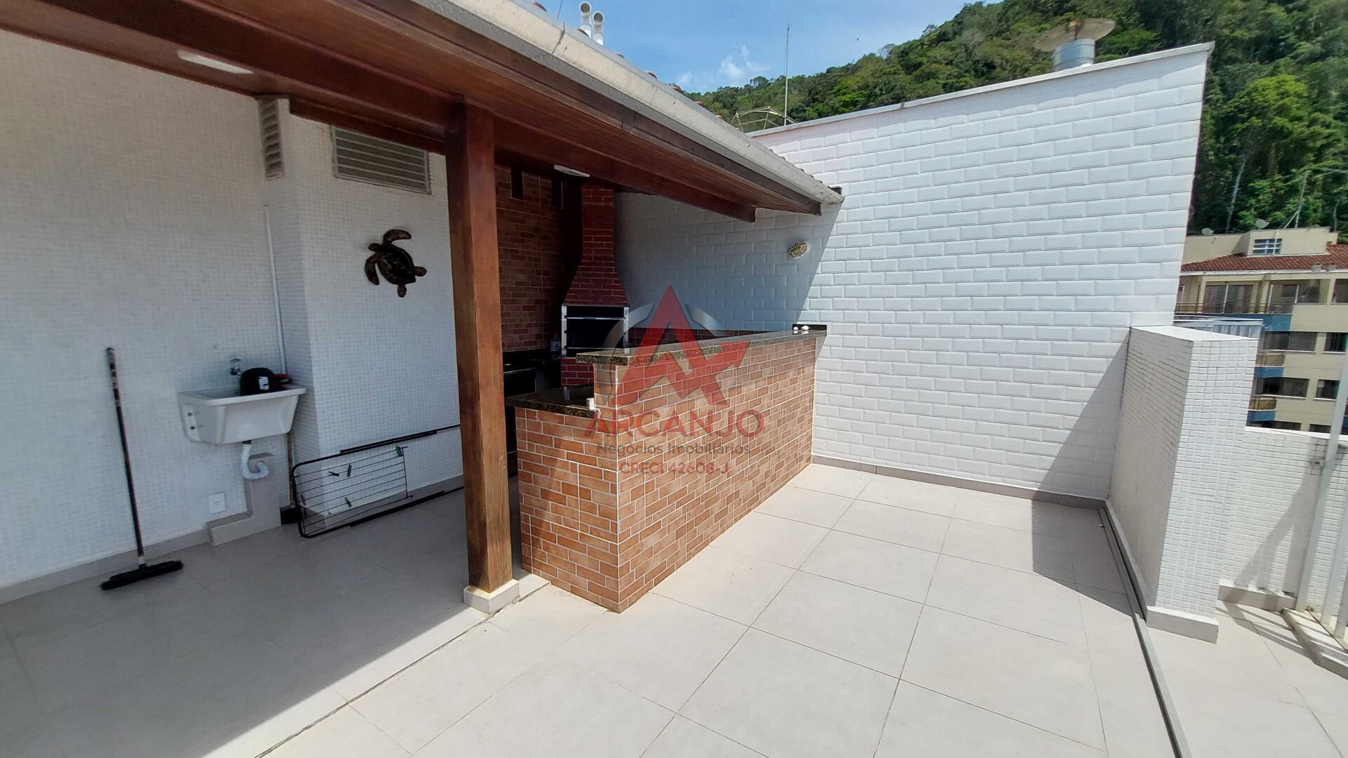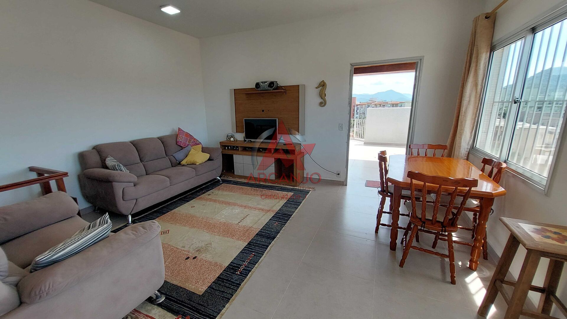 Excelente apto cobertura duplex, com 02 quartos sendo 01 suíte, sala, cozinha, área de serviço, 01 banheiro social, no piso superior tem uma sala ampla, varanda com churrasqueira, vista para o mar e montanha.