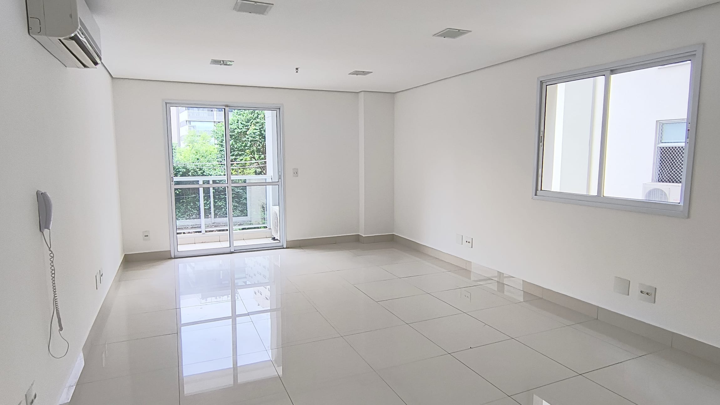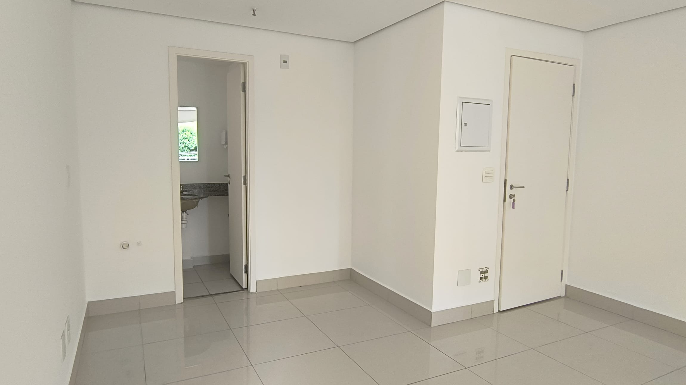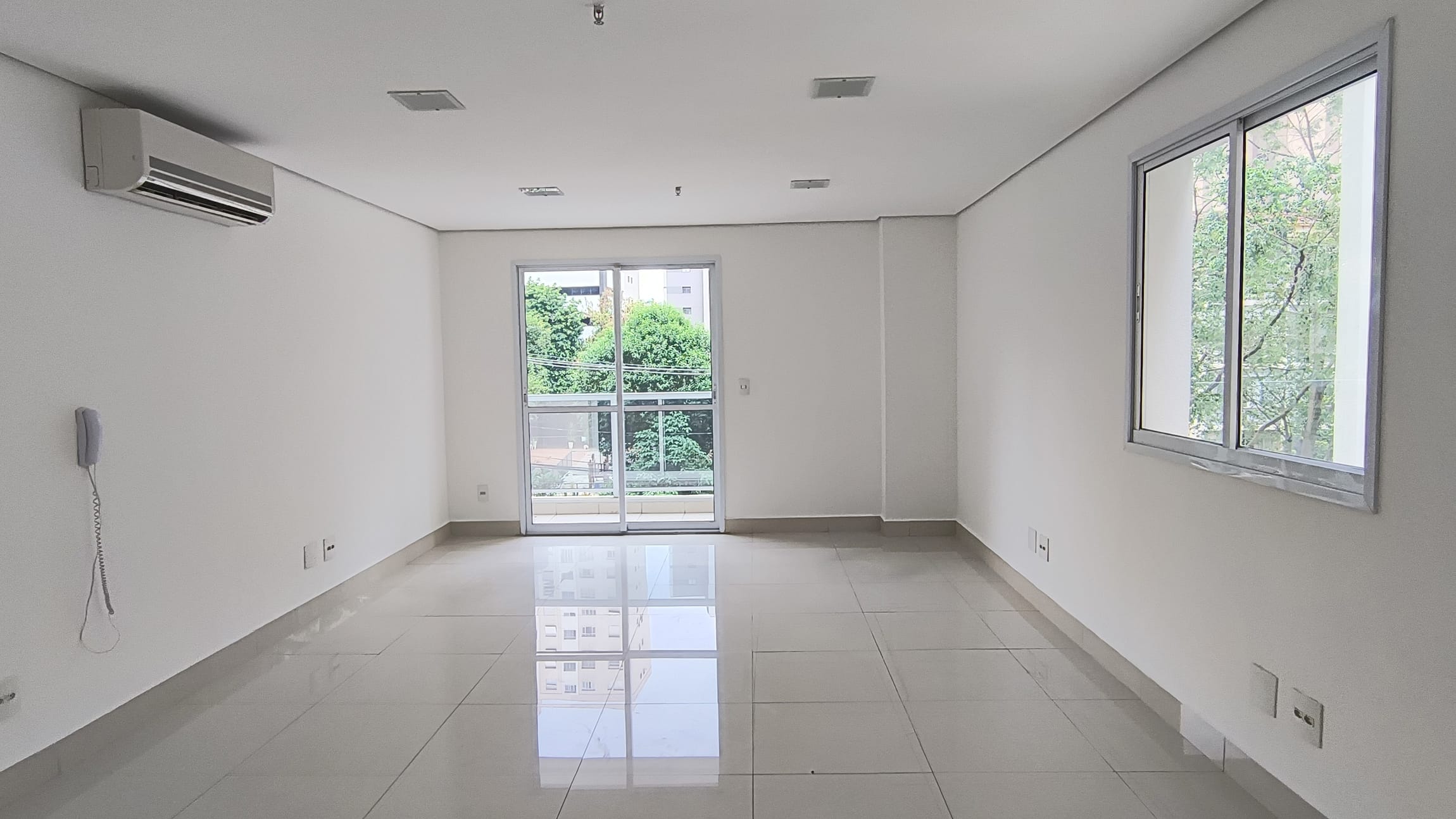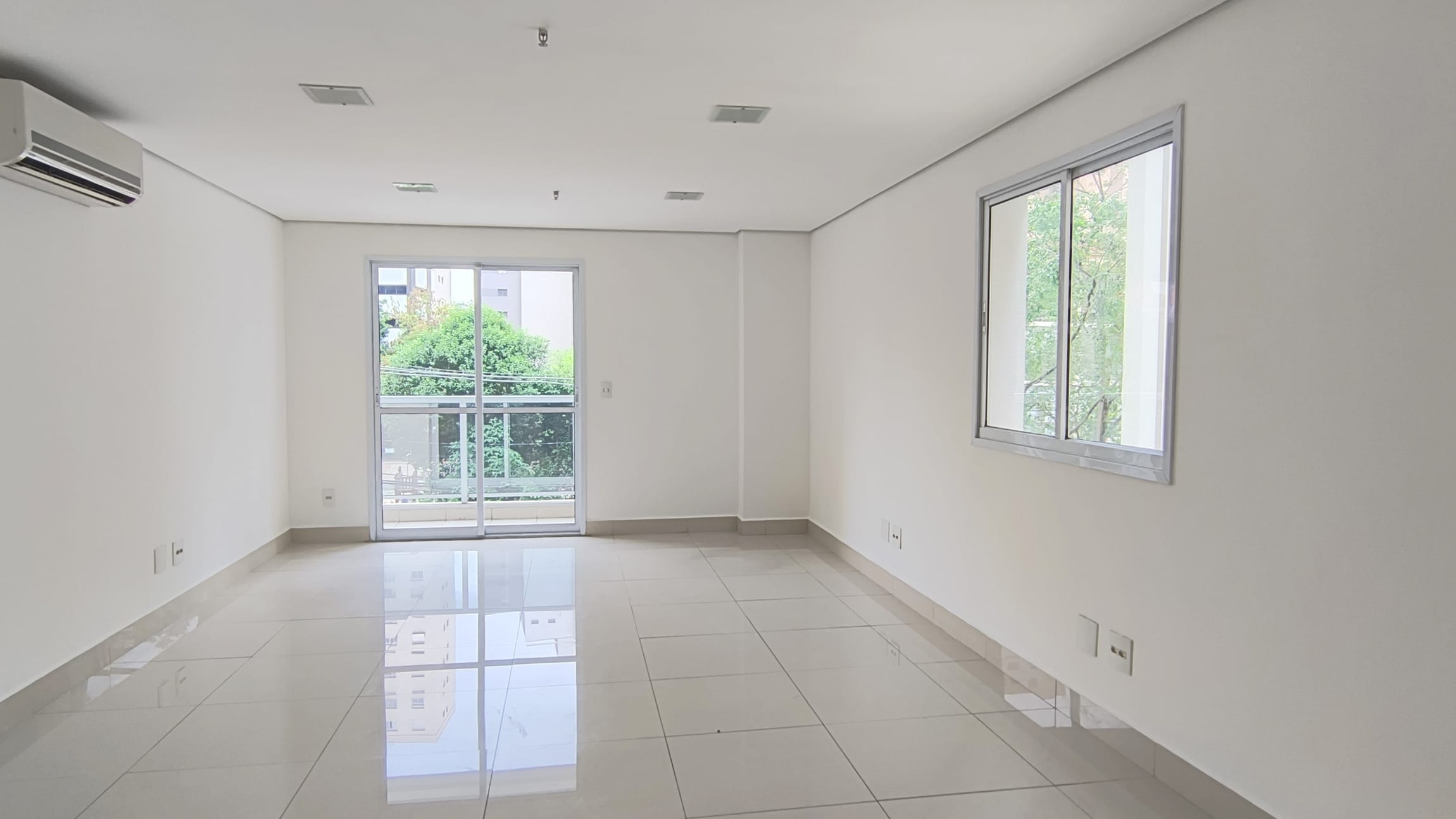 A sala possui 38,85m² e está totalmente aberta, um convite `a sua imaginação para um lay out que atenda suas necessidades.Possui um banheiro infraestrutura para copa e varanda técnica. O piso em porcelanato confere um ar de modernidade ao ambiente e é de fácil manutenção, A sala é super iluminada. No teto , forro em gesso com luminárias de embutir detector de fumaça e rede de sprinkles.essa sala possuib também 1 vaga de garagem.