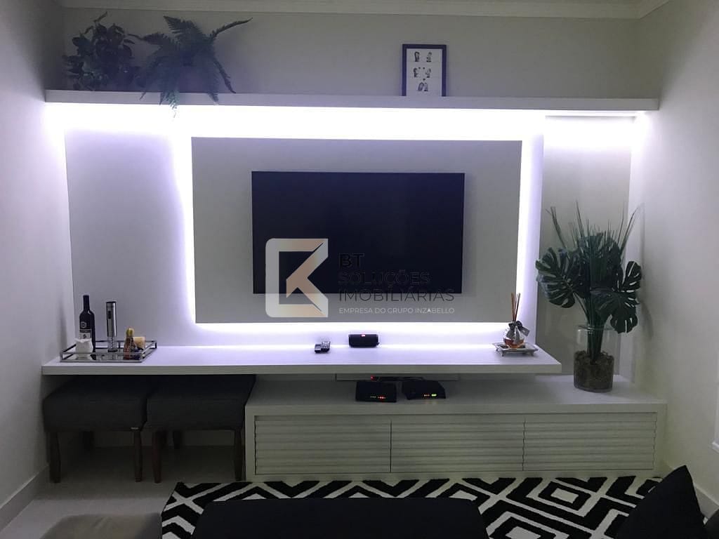 Ampla sala de estar com móvel planejado e iluminação em LED